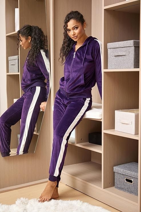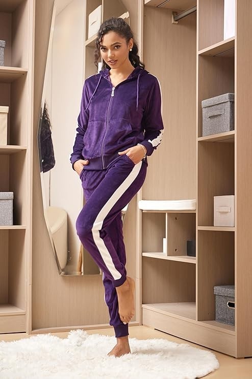 как выглядит Women s Velvet Purple 2 Piece Tracksuit Full-zip With Hoodie Size XL фото