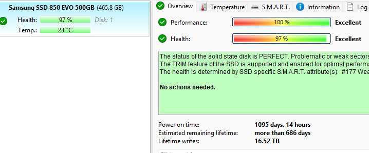 Samsung 850 EVO 500GB 2.5 SATA SSD Solid State Drive MZ-75E500 97 HEALTH