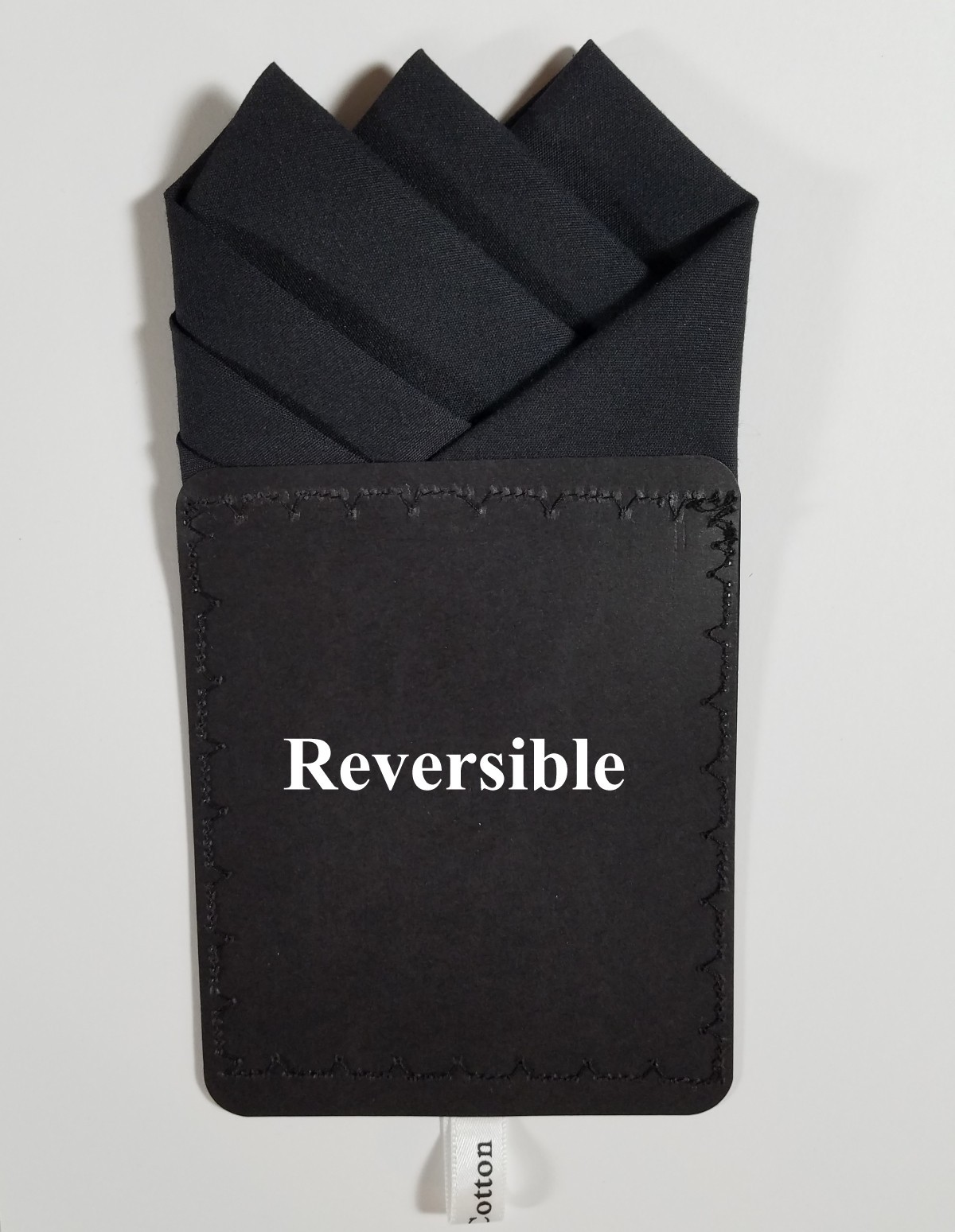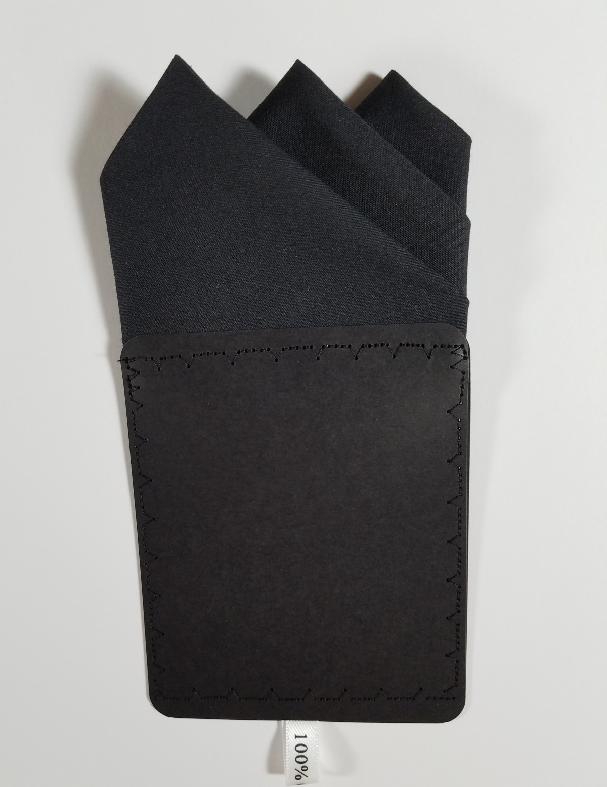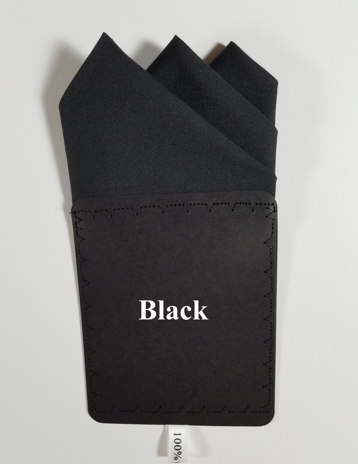 NEW - Men's Black Cotton Pre-folded Pocket Square Handkerchief Insert - 3 point