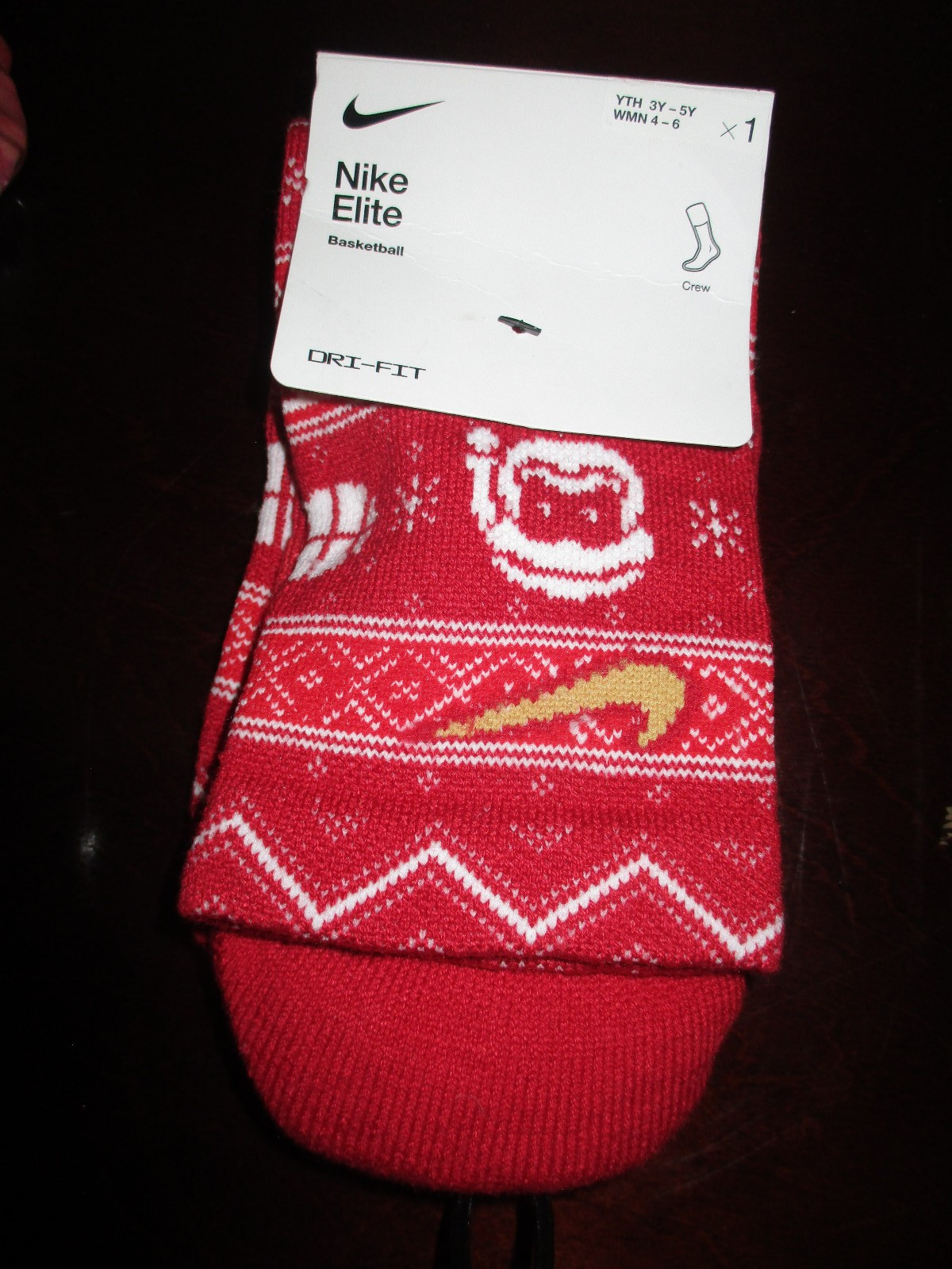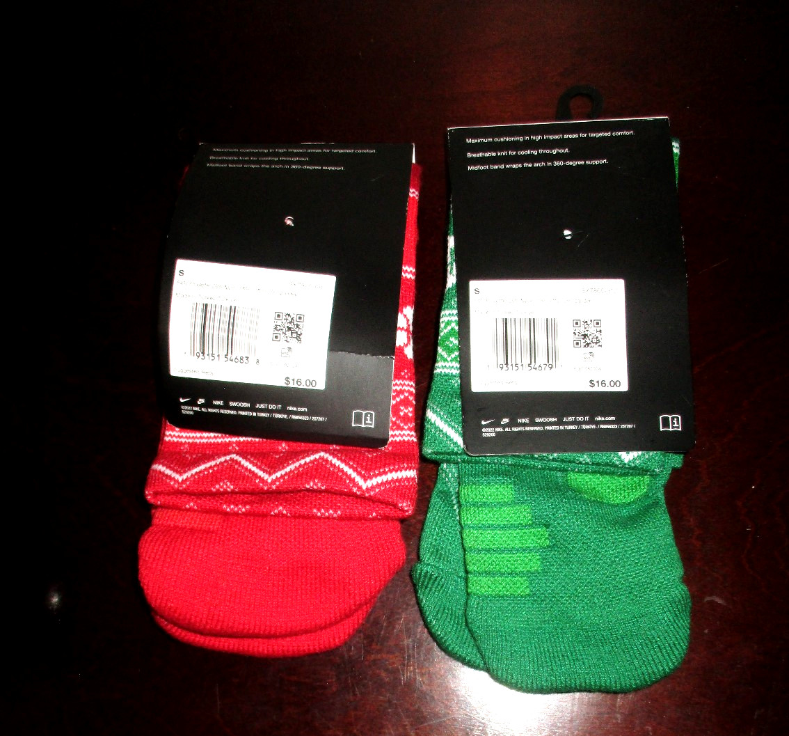 как выглядит LOT OF 2 PR NIKE ELITE CREW BASKETBALL SOCKS CHRISTMAS SIZE SM WOM 4-6 YTH 3Y-5Y фото