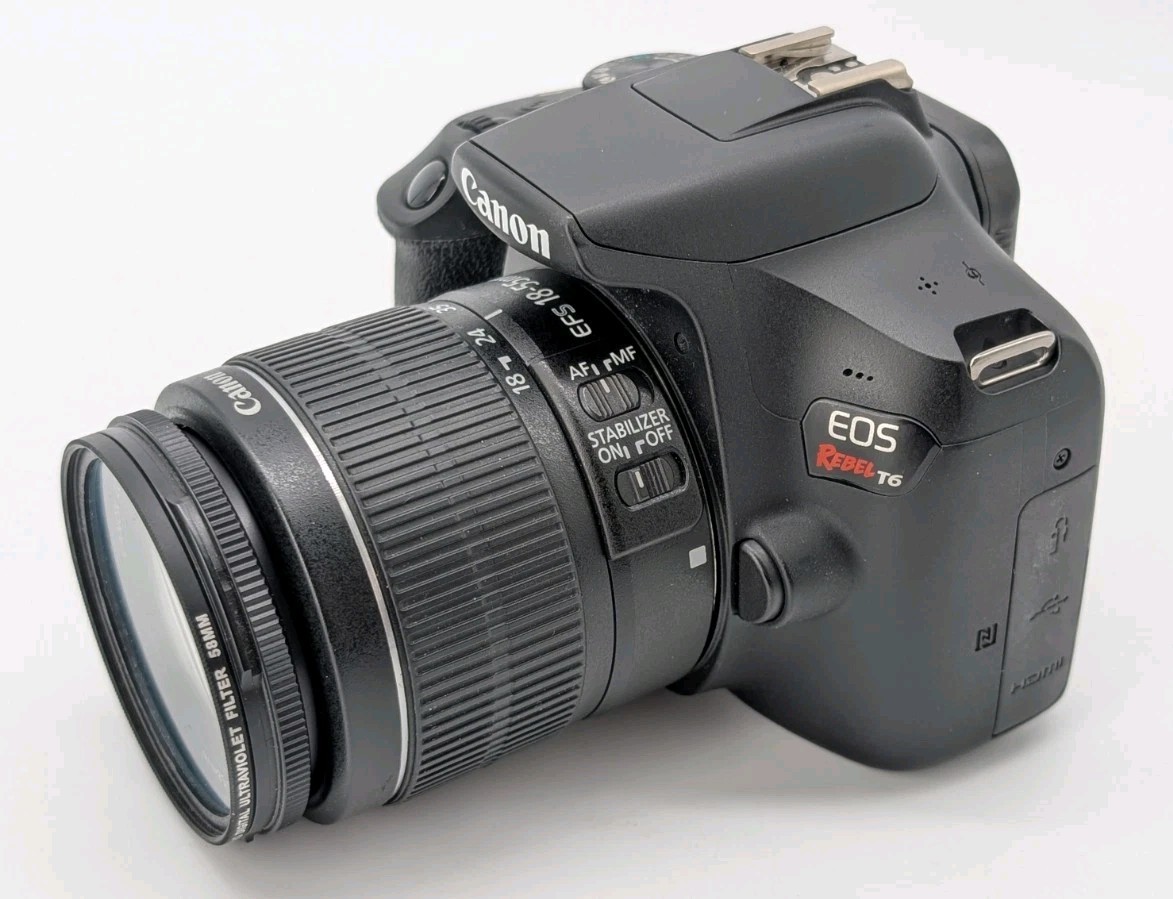 Cannon EOS Rebel T6 Camera, Lens, Battery, Charger, Cable, Strap, Bag, 256 GB