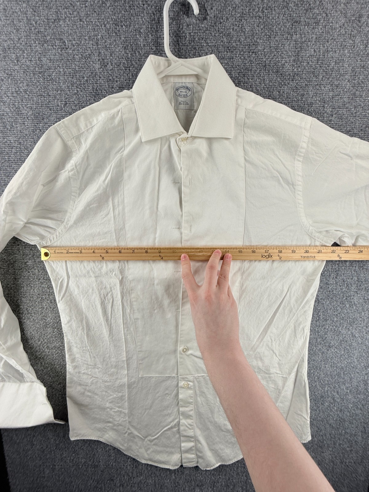 как выглядит Brooks Brothers Formal 15.5 35 Slim Cotton French Cuff White Shirt Long Sleeve фото