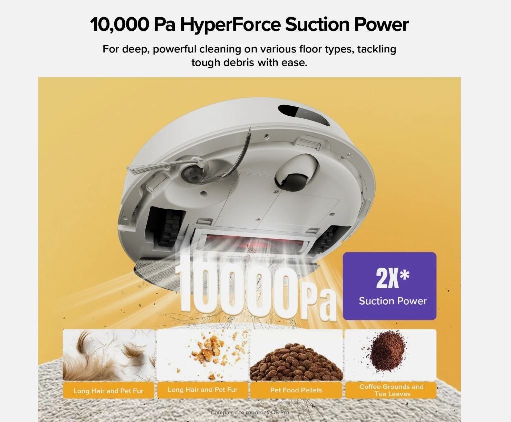 Особенности: Auto Dust Emptying, PreciSense® LiDAR Navigation, Adaptive Route Algorithms, Seamless Floor Cleaning, Customizable App Features, Only support 2.4GHz Wi-Fi. 5GHz is not supported., 10000Pa Suction, Multi Surface, Pet Hair Removal