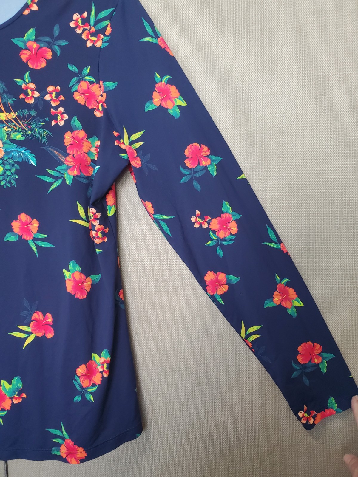 Lands' End Blue Tropical Print Long Sleeve Rash Guard Swim Shirt Size M/L 10-12