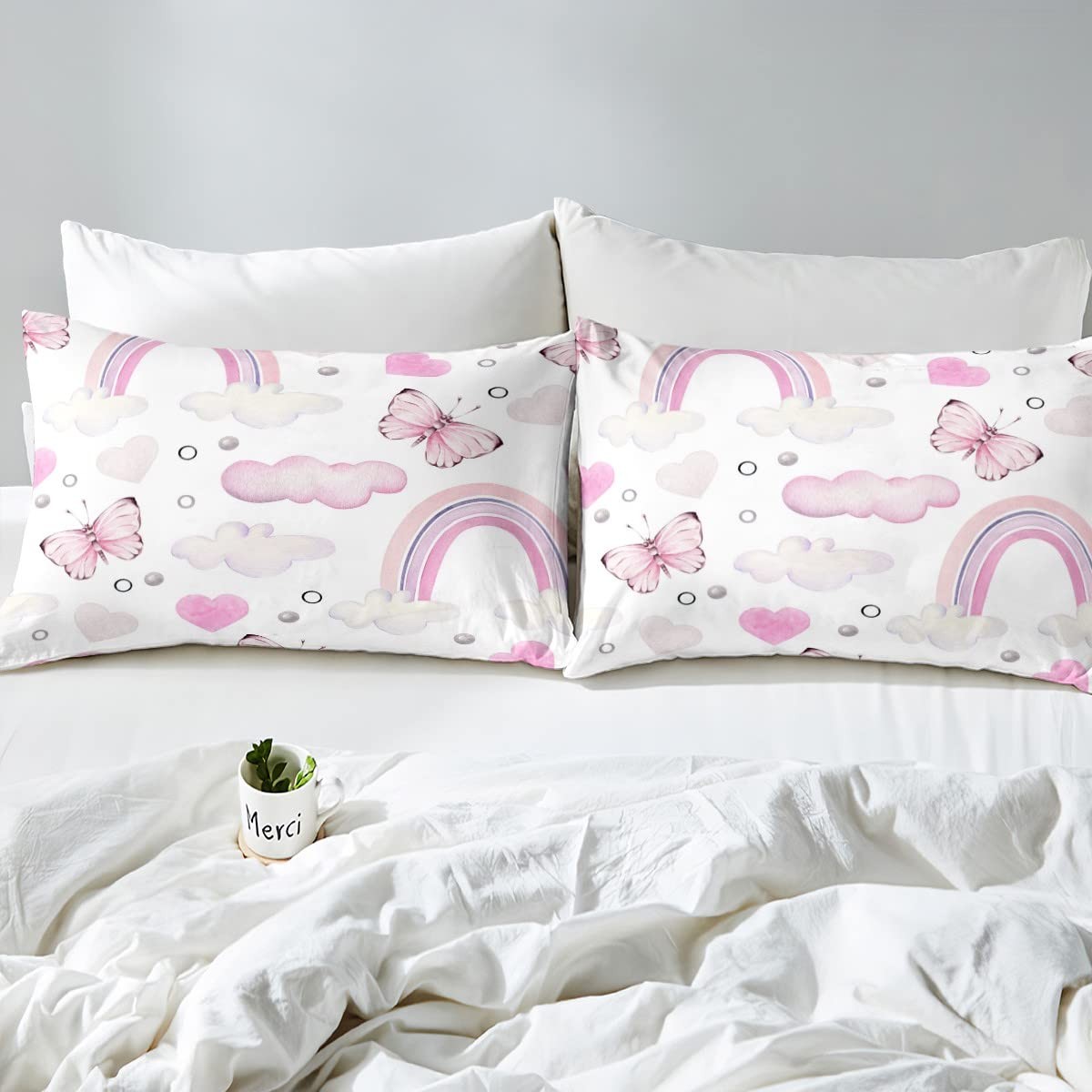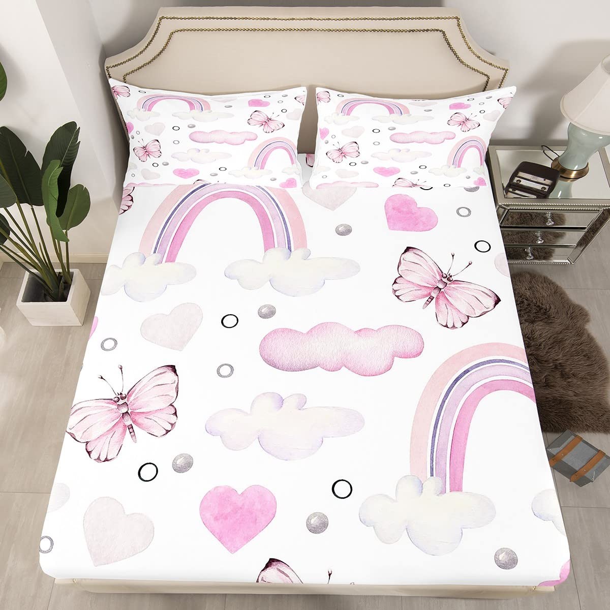 Pastel Twin Sheet Set Kids Girls Rainbow Sheets 3 Piece Pink Butterfly Cloud ...