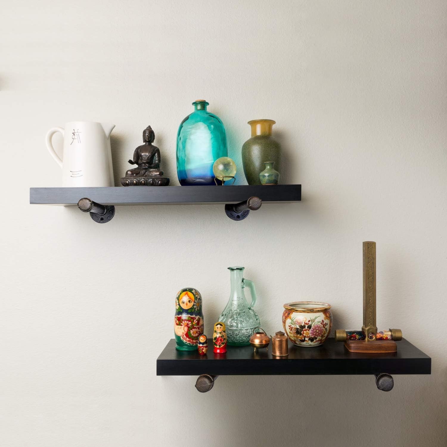 как выглядит 1/2" Industrial Black Iron Pipe Shelf Brackets, Rustic Wall Mounted DIY Shelv... фото
