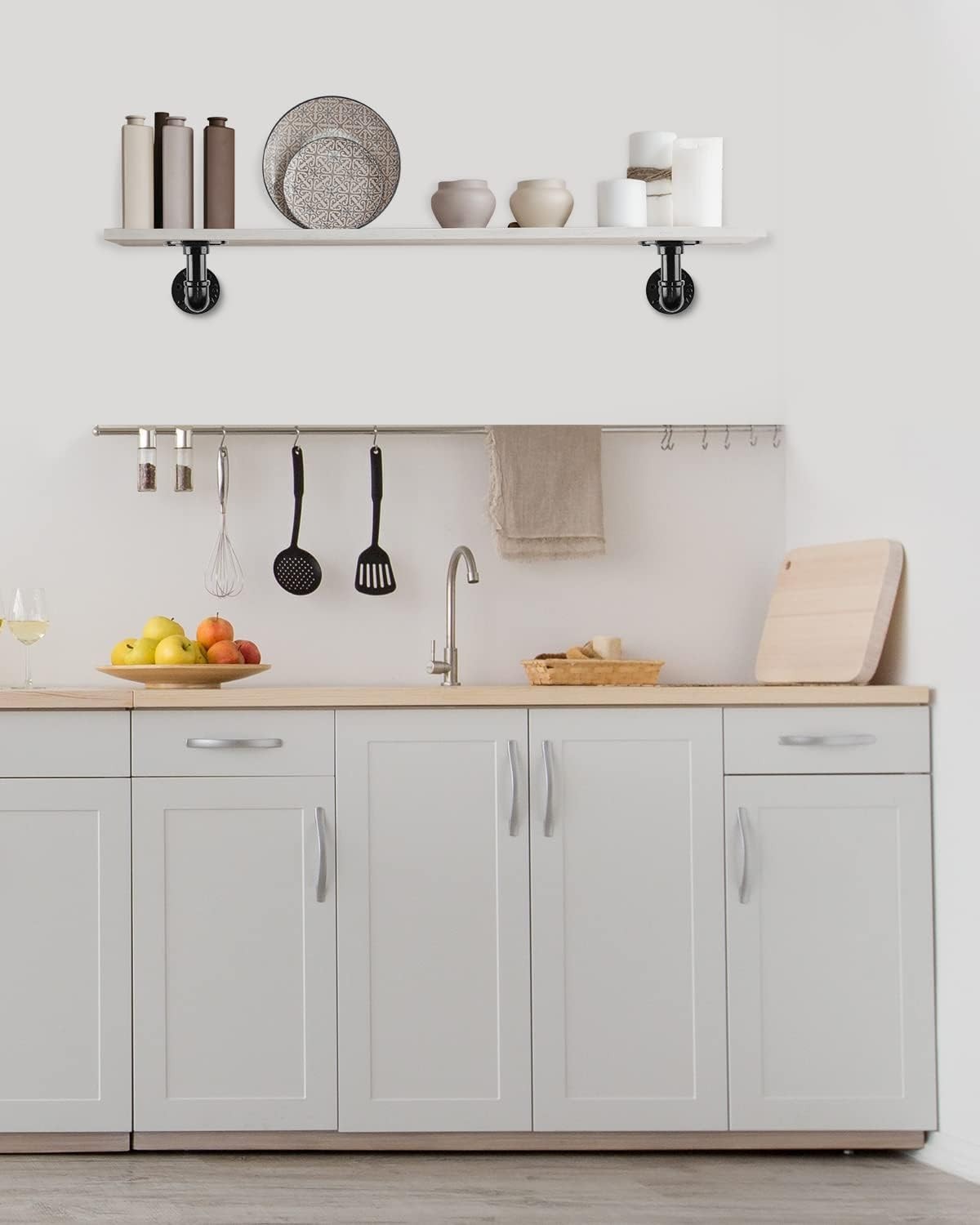 как выглядит Industrial Pipe Shelf Brackets, L Pipe Black Floating Shelf Brackets Heavy Du... фото
