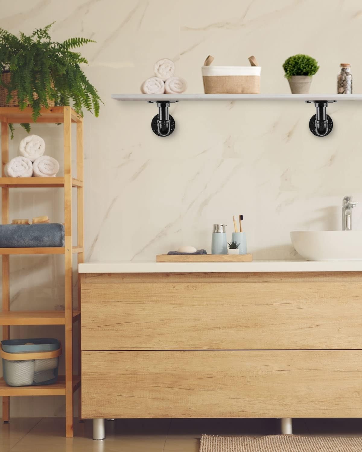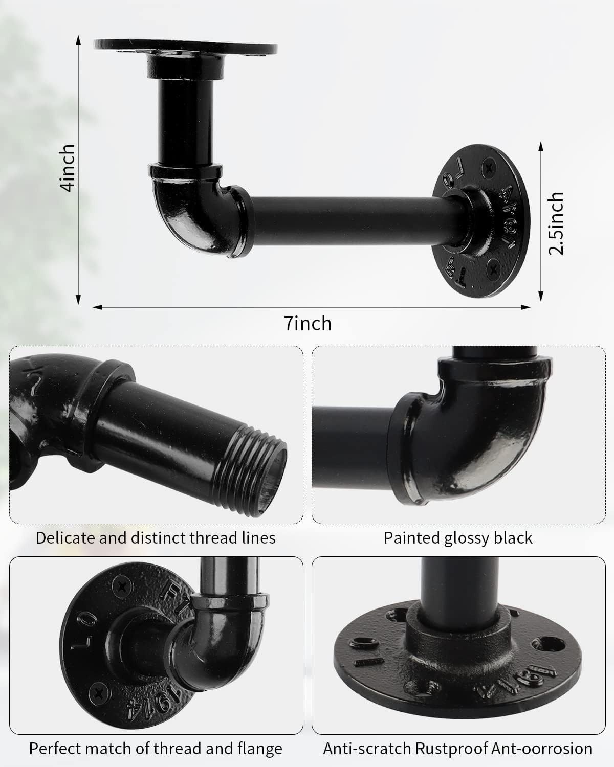 Industrial Pipe Shelf Brackets, L Pipe Black Floating Shelf Brackets Heavy Du...
