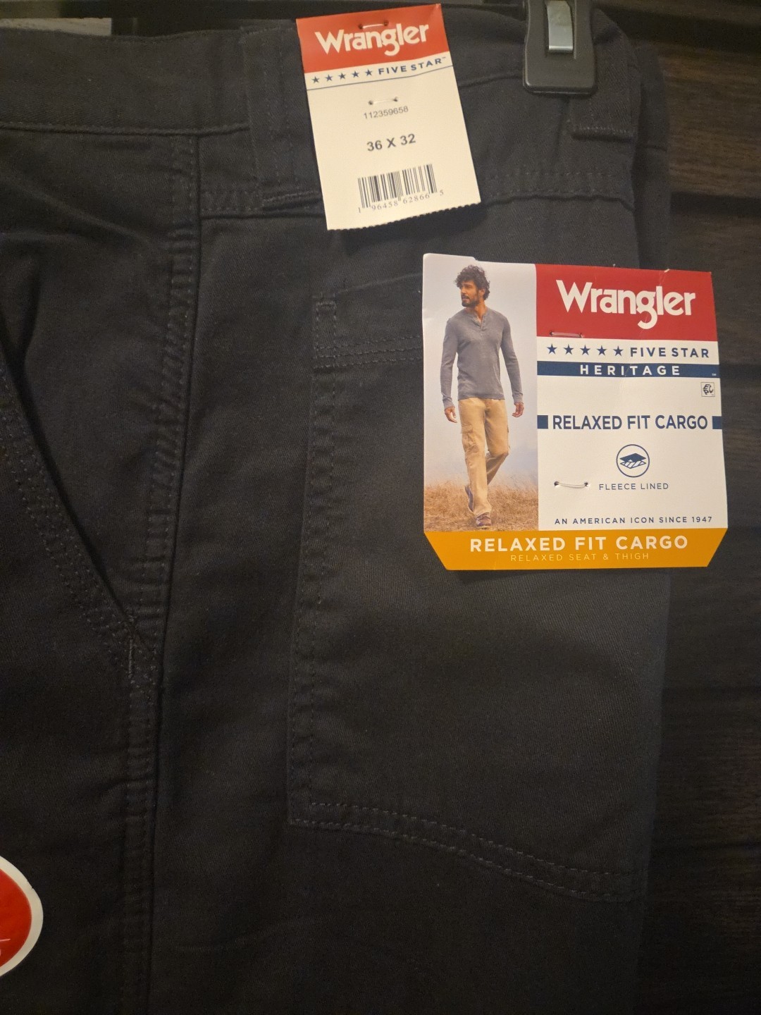 как выглядит Wrangler Mens Fleece Lined Relaxed Fit Cargo Black Cotton Pants Size 36x32 NWT фото