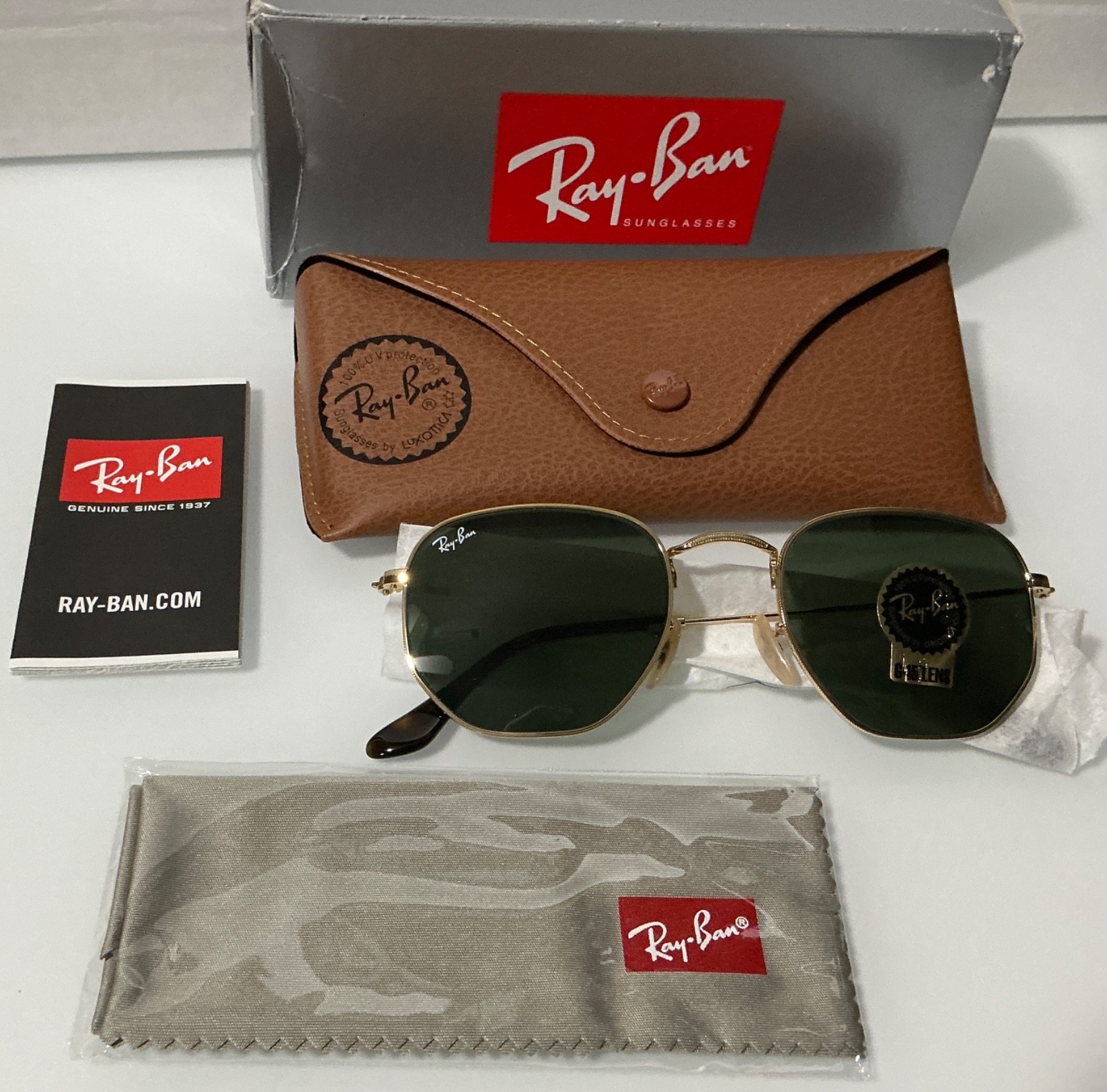 Ray-Ban RB3548N 51-21 Hexagonal Flat Lens Sunglasses Gold G-15 Green Eyewear Kit