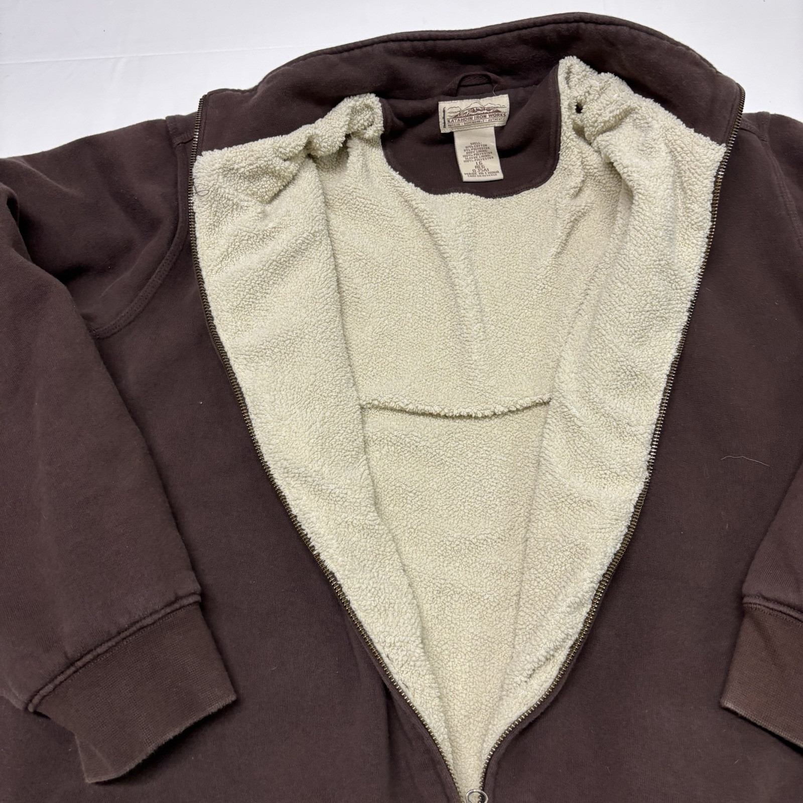 L.L. Bean Katahdin Iron Works Sweatshirt Men s Large Sherpa Lined Full Zip Brown