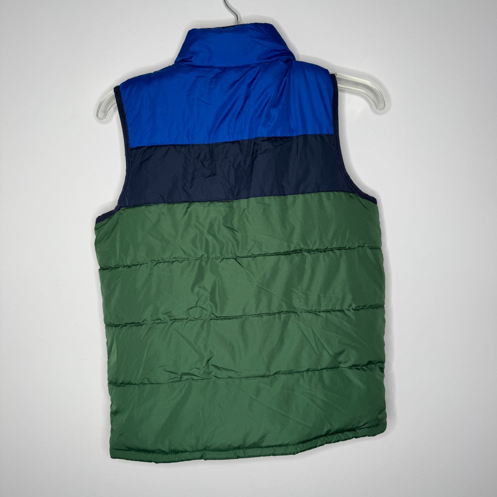 Gap Kids Color Block Quilted Puffer Vest Full Zip Boys L Green Gables Navy 47383