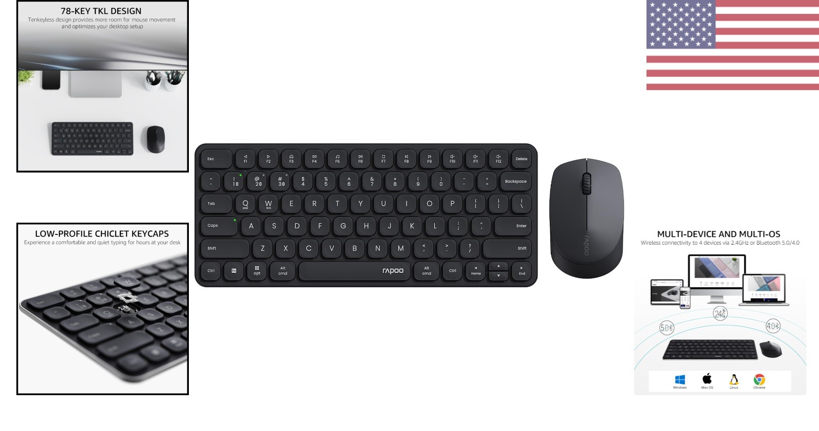 Versatile Multi-Device Wireless Keyboard Mouse Combo - 4 Devices, Quiet Clicks