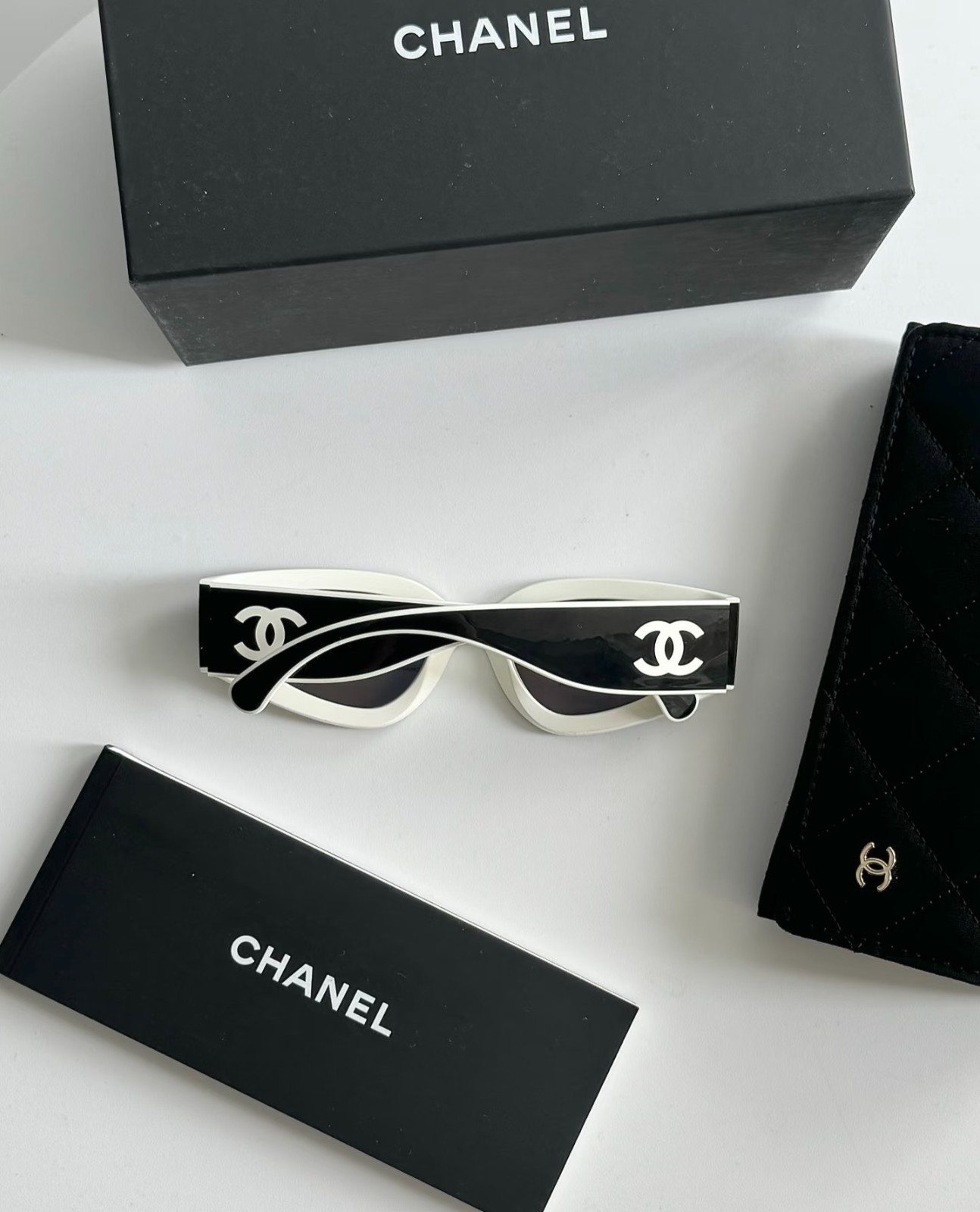как выглядит CHANEL SUNGLASSES BLACK WHITE FRAME 100 AUTHENTIC CLASSIC 6056 CAT EYE 2025 фото