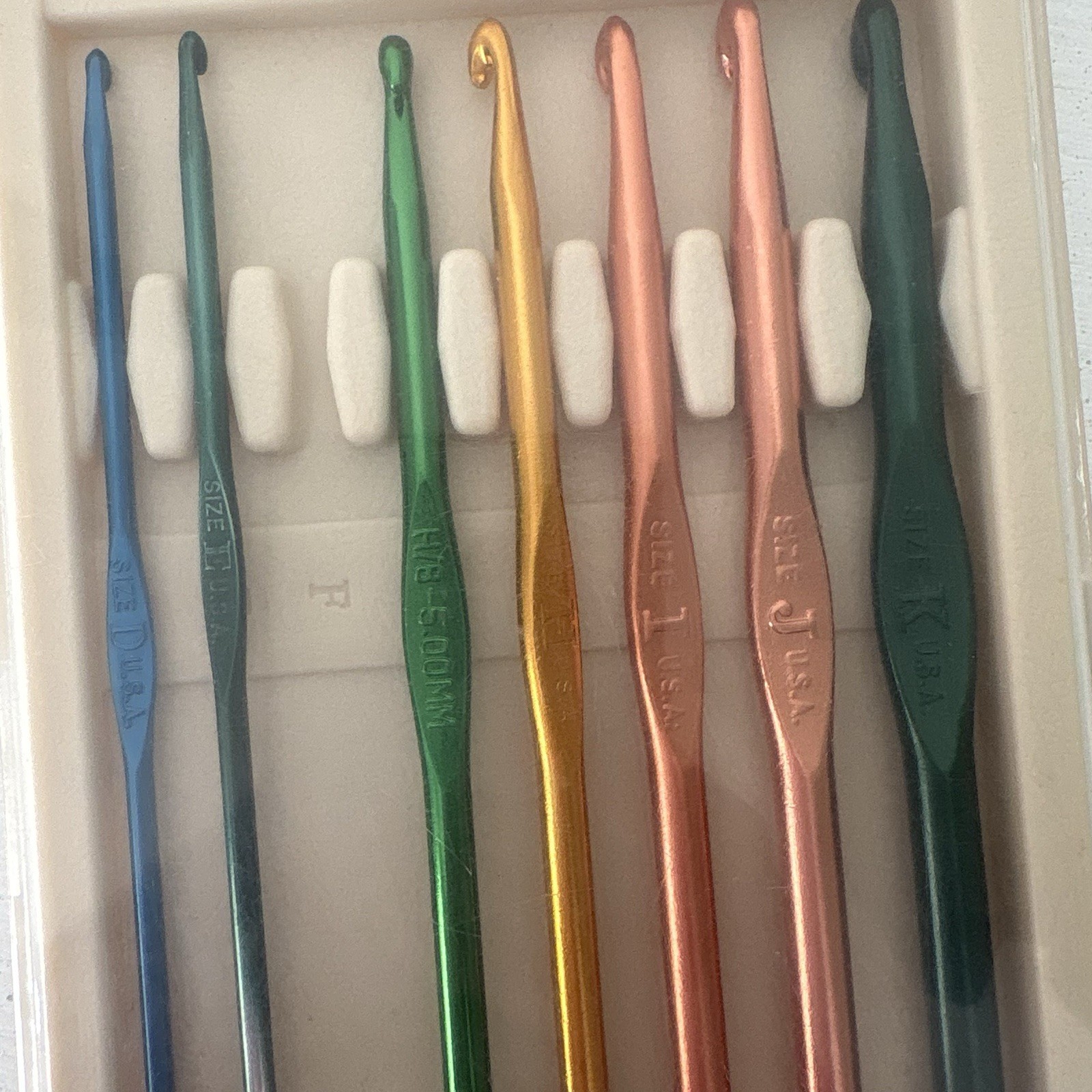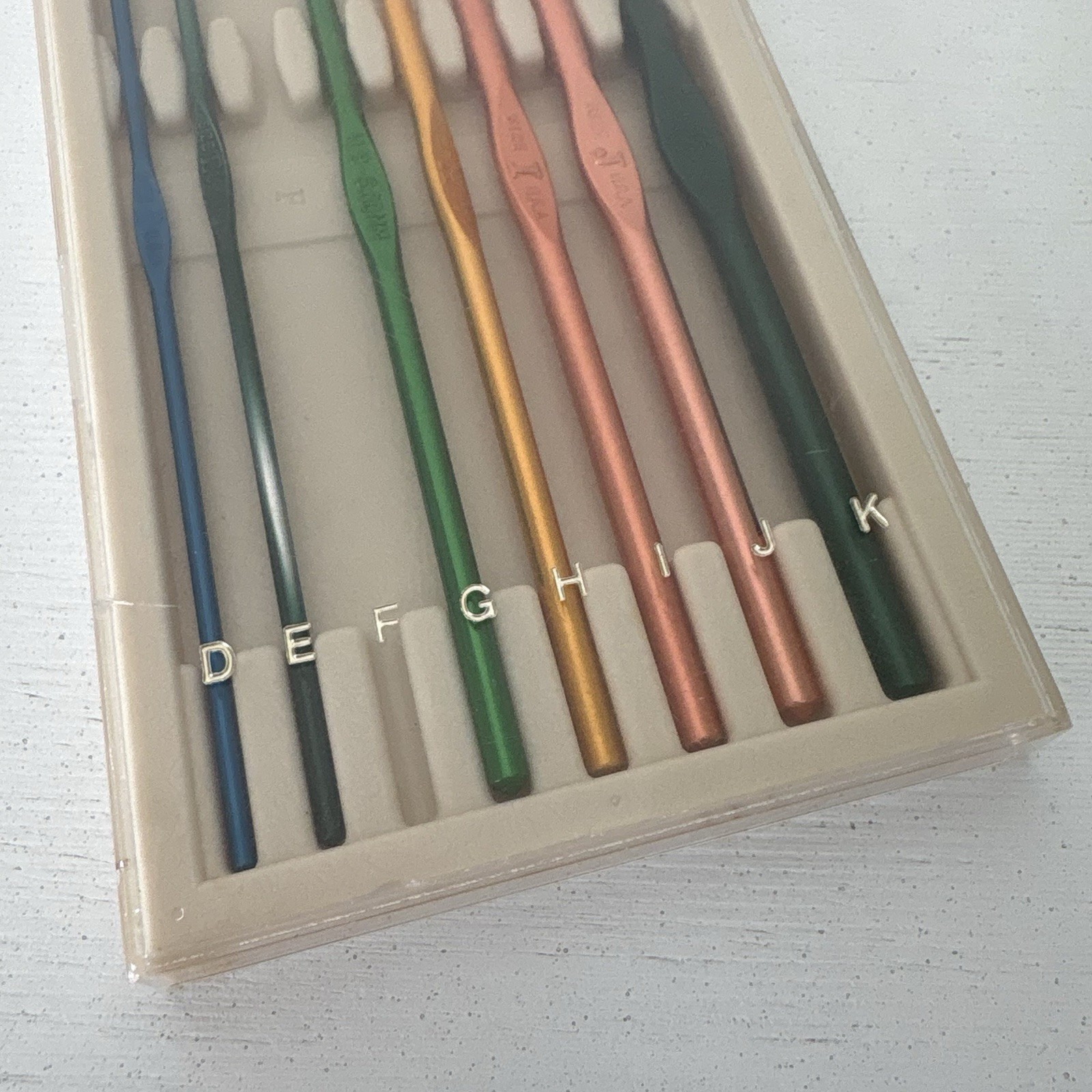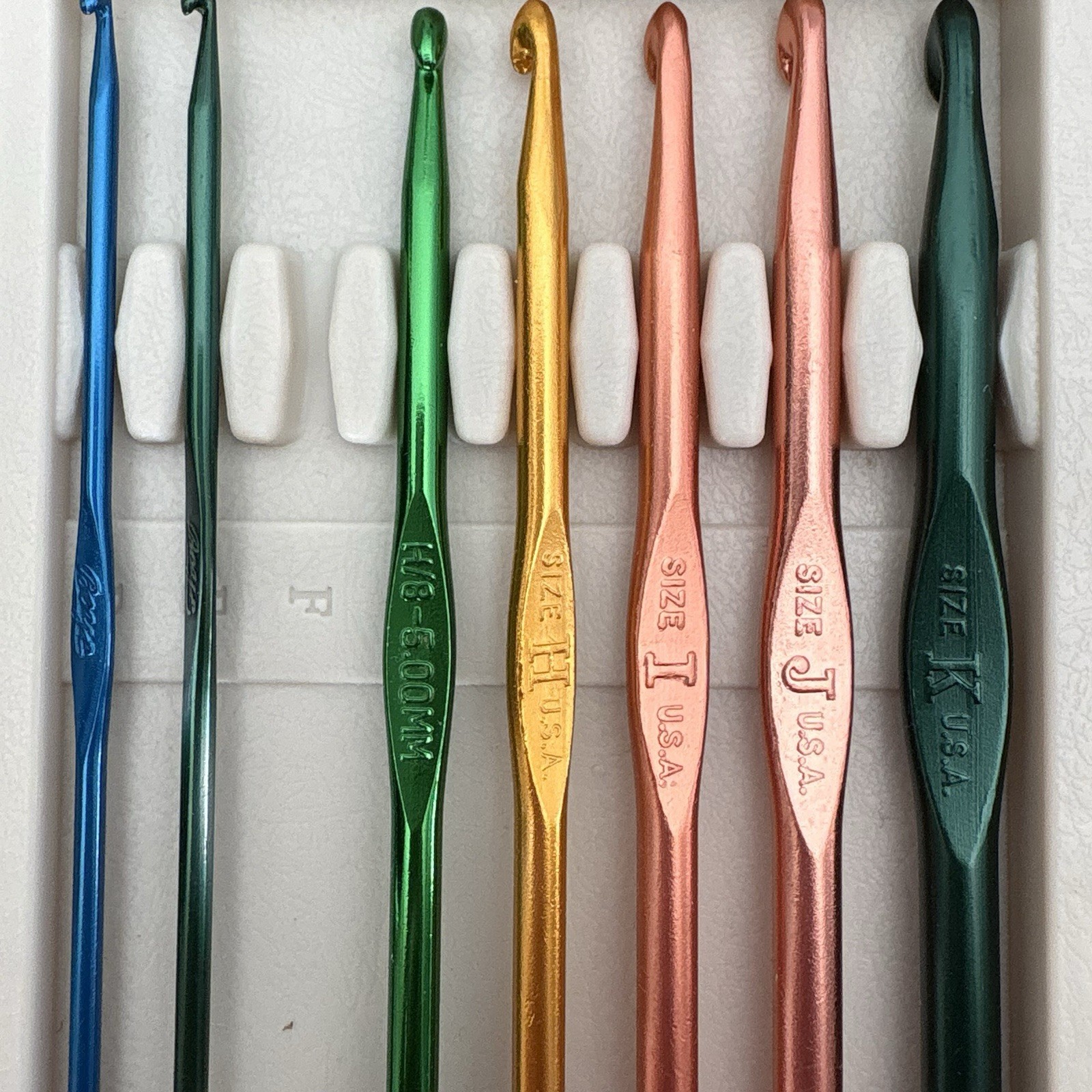 Vintage BOYE Aluminum Crochet Hook Set Popular Sizes With Case Missing F