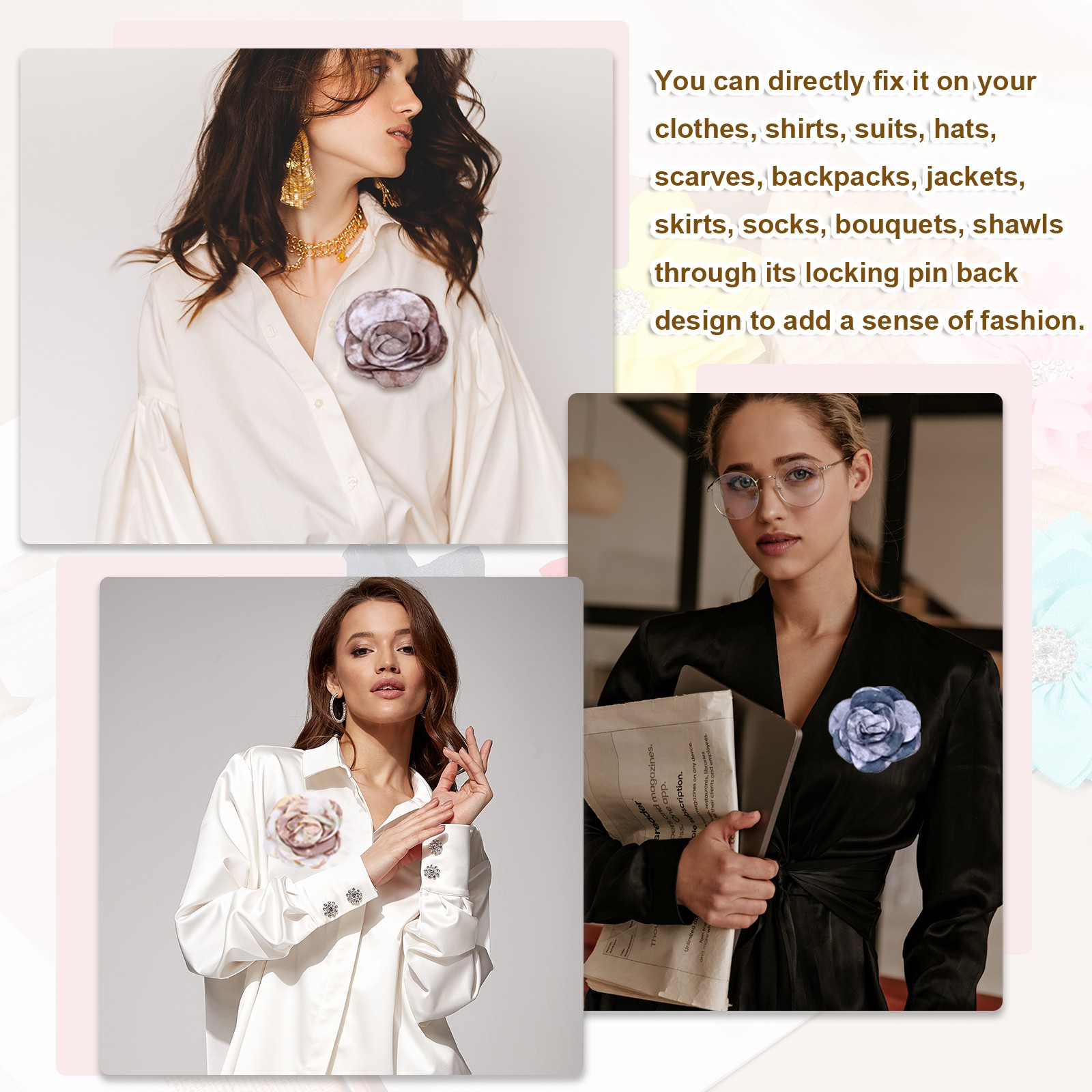 Rose Flower Brooch, Floral Brooch Satin Fabric Camellia Corsage, Purple Green