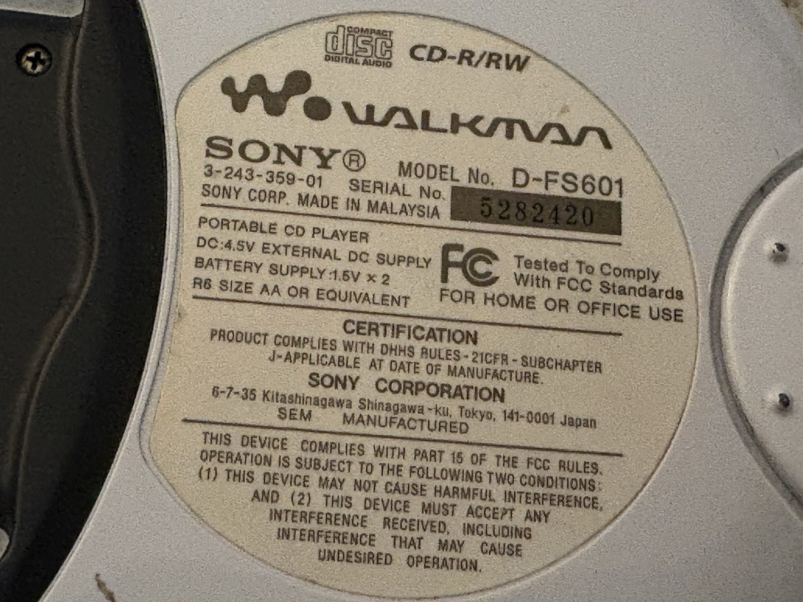 как выглядит SONY Sports CD Walkman S2 D-FS601 Weather Resistant W/Adapter Cord WORKS GREAT фото
