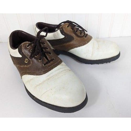 Footjoy FJ Men's SoftJoys Terrains White Brown Golf Shoes Outdoor Size 9M 57609