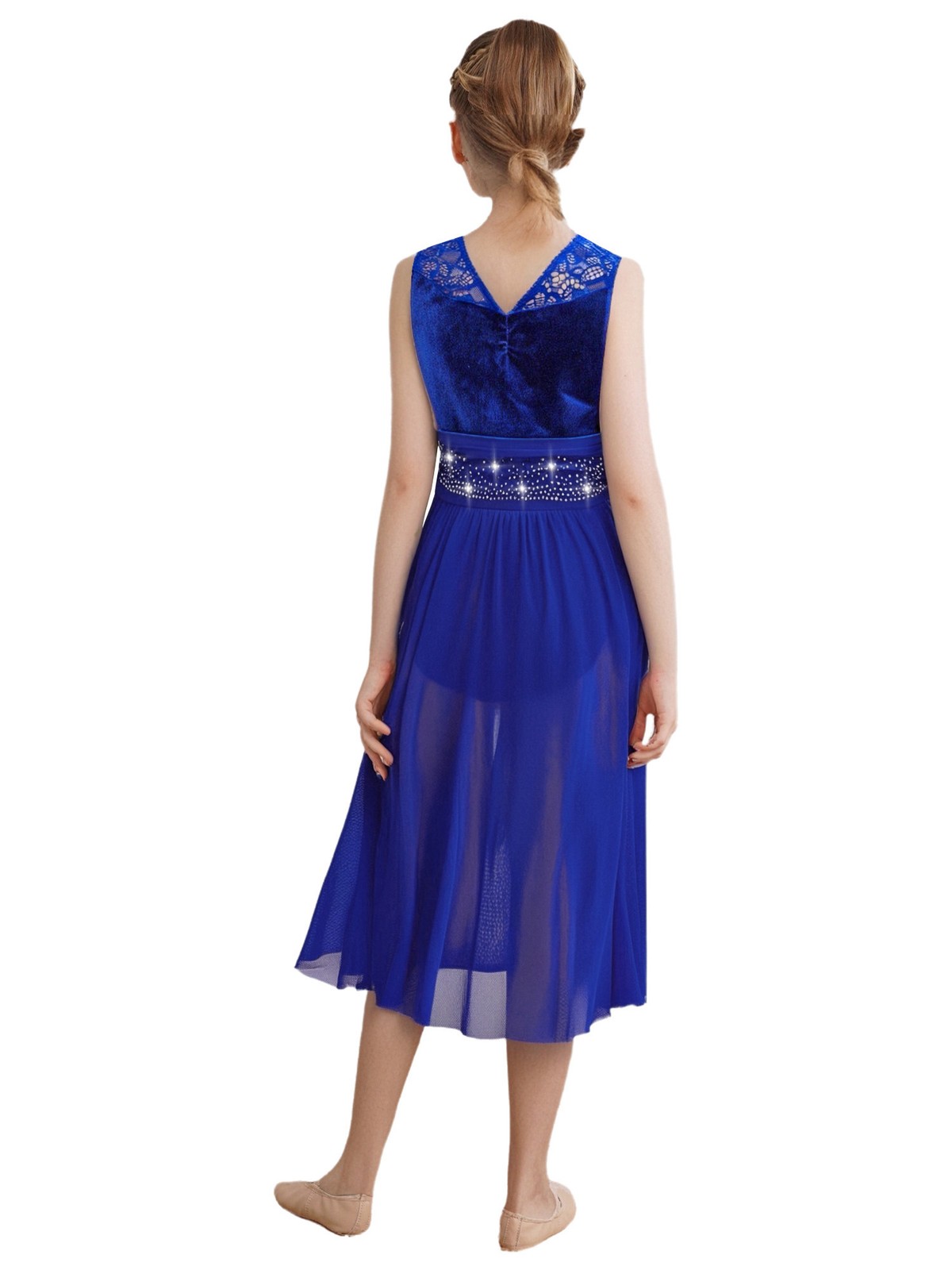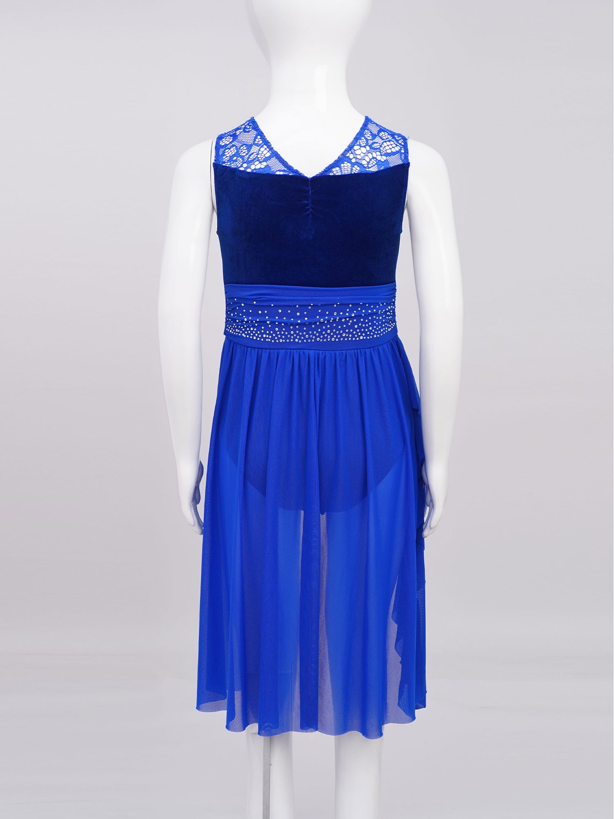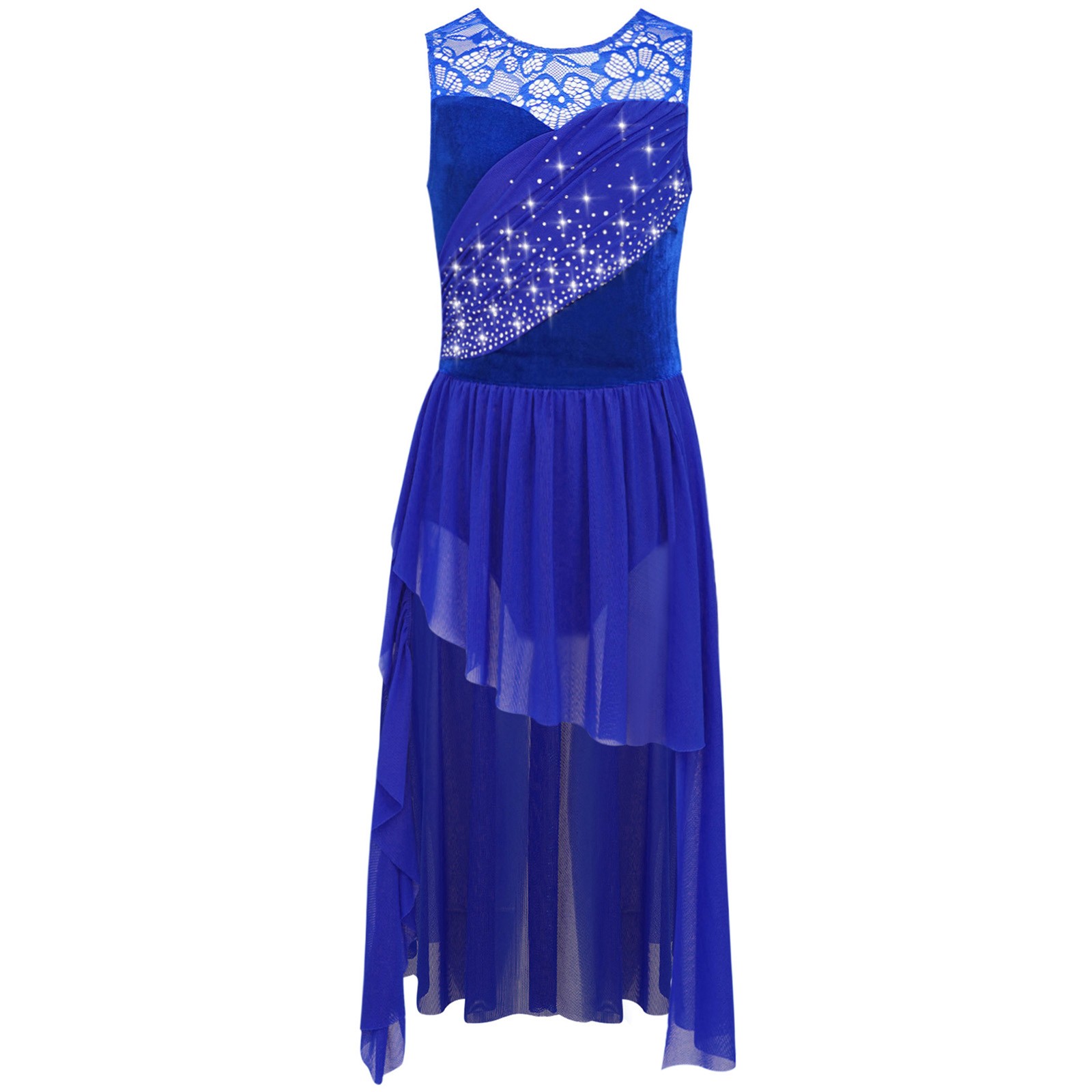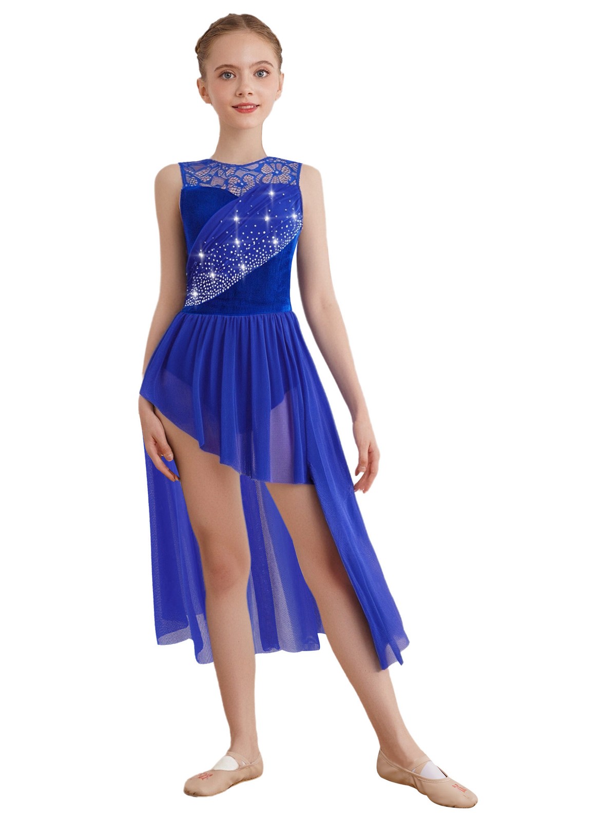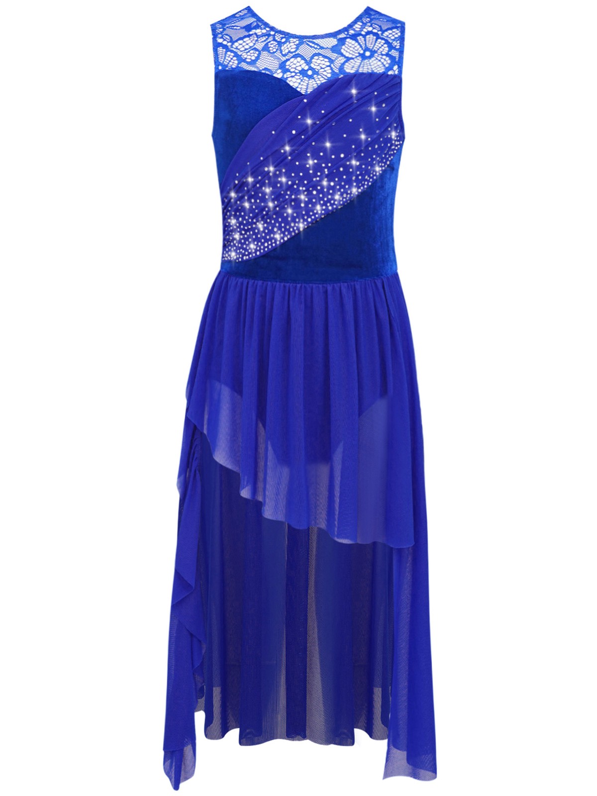 Kids Lyrical Dance Costume Lace Ballet Leotard with High Low Skirt Shiny Dress