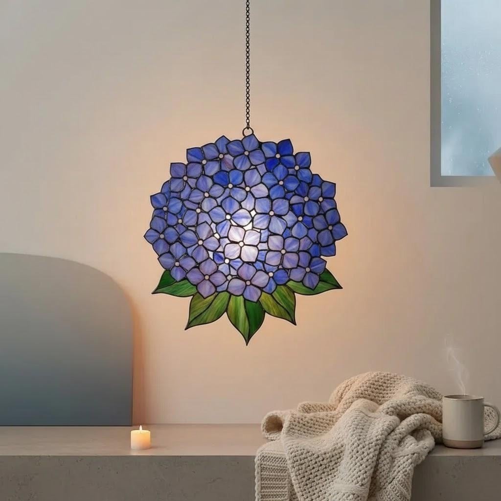 как выглядит Blue Hydrangea Acrylic Suncatcher, Floral Window Hanging Garden Decor фото