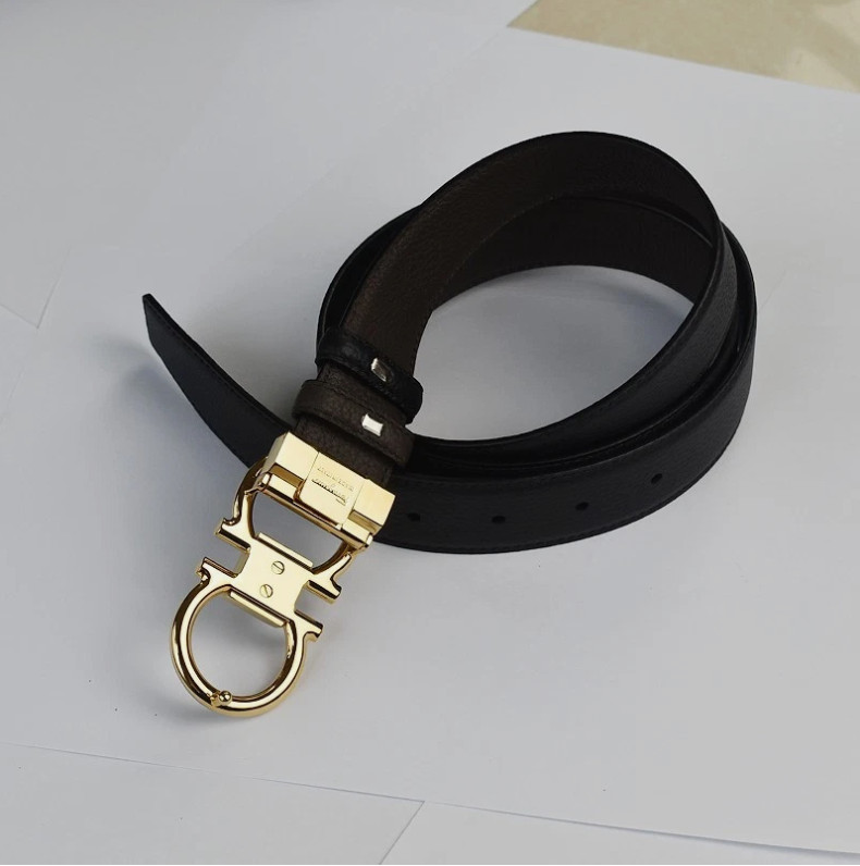 Ferragamo Black/Brown Reversible Belt 120cm Gold Horseshoe buckle MEN