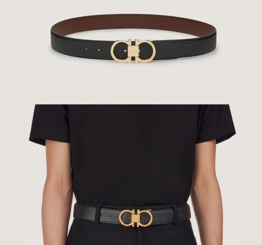как выглядит Ferragamo Black/Brown Reversible Belt 120cm Gold Horseshoe buckle MEN фото