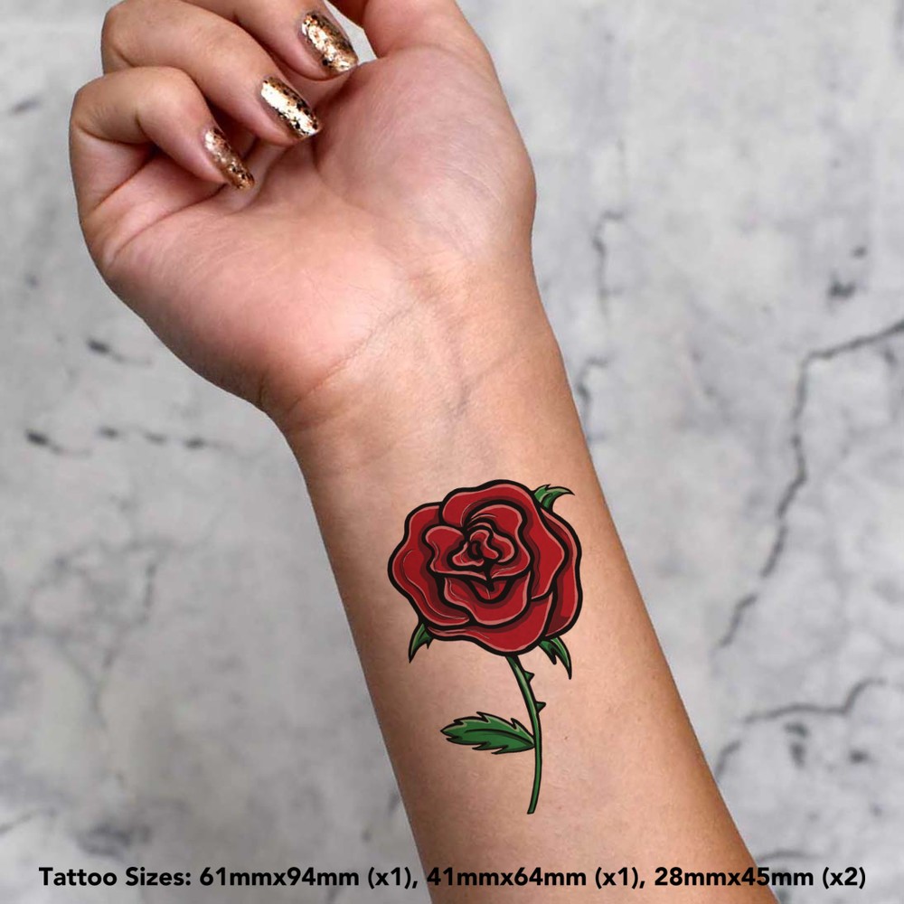 4 x 'Red Rose' Temporary Tattoos / Transfers TO00036893