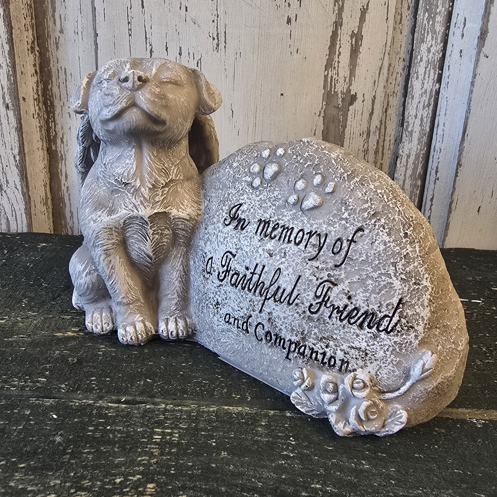 Napco Dog Angel Memorial Stone Pet Grave Marker Garden Statue Faithful Friend