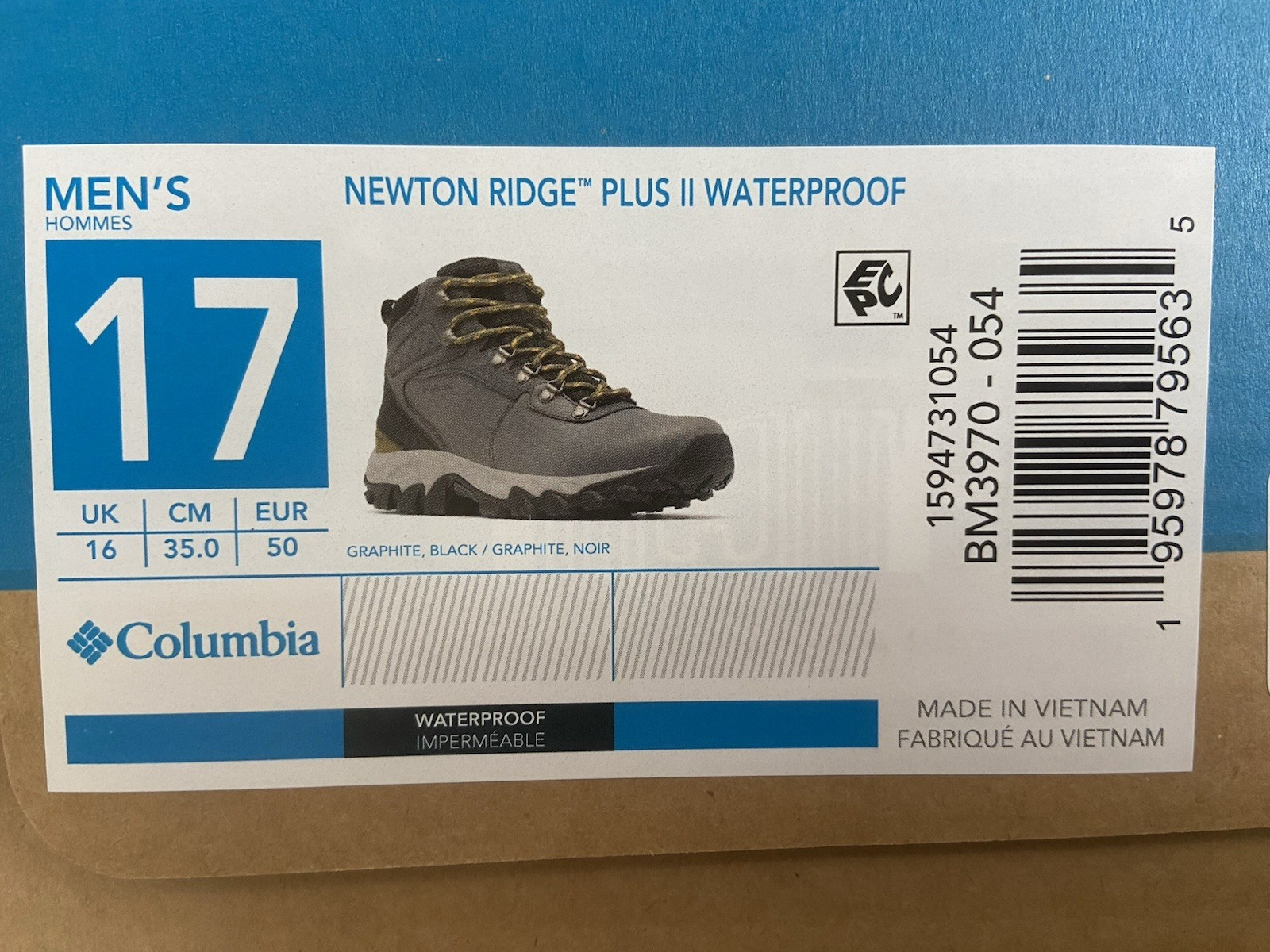 Columbia Newton Ridge Plus II Boots Waterproof Hiking Trail Graphite Black 17 50