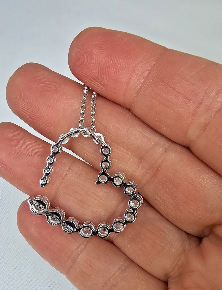 Sterling Silver CZ Heart Pendant Necklace Sparkly Open Heart Romantic Gift