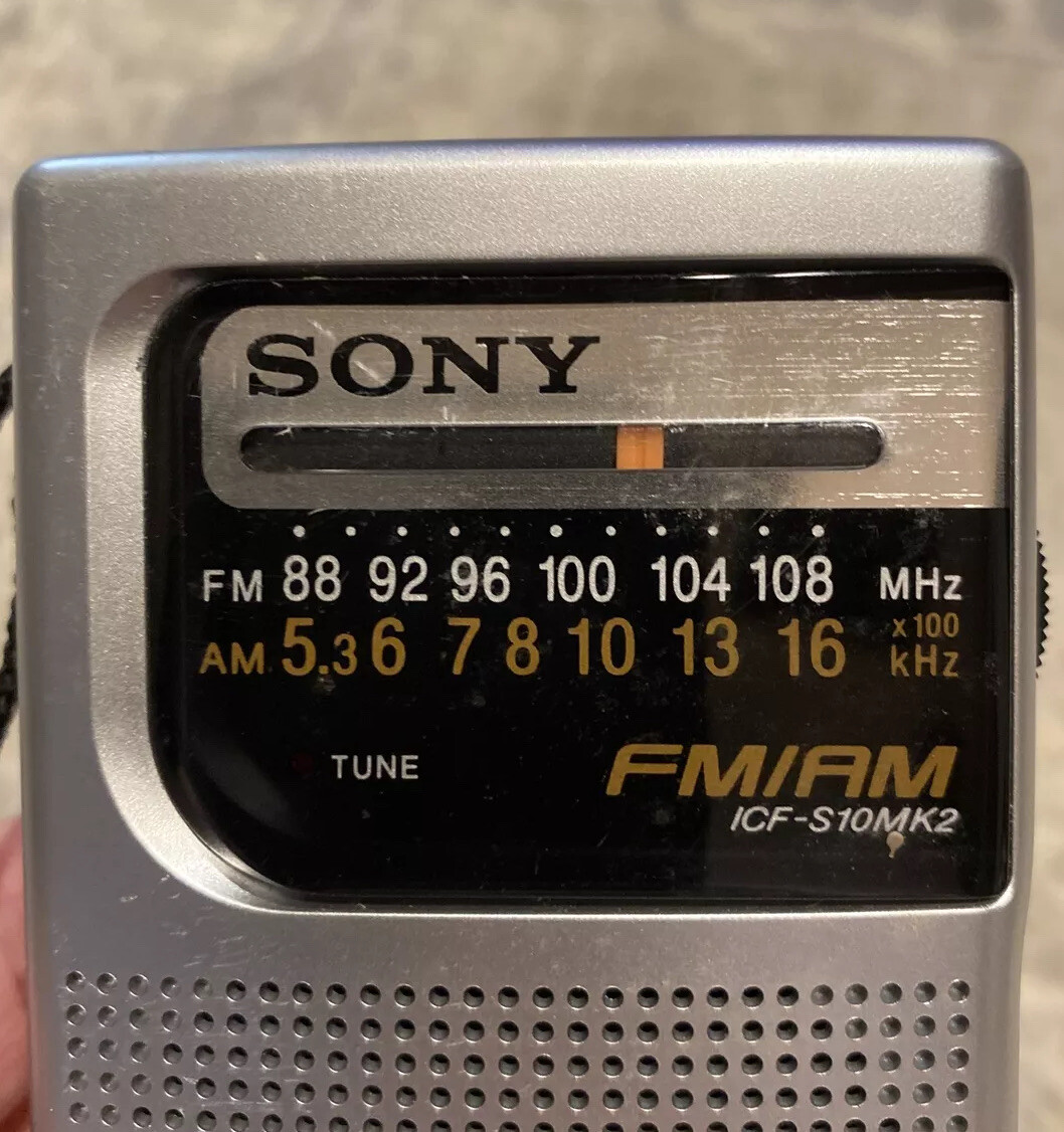Vintage Sony ICF-S10MK2 Silver Pocket AM/FM Radio Battery Operated Tested Works