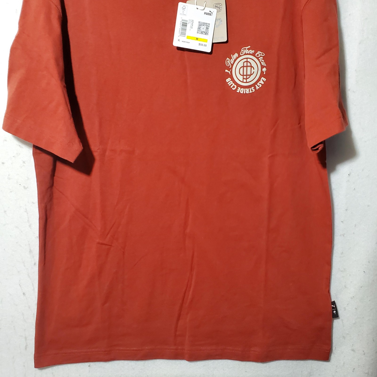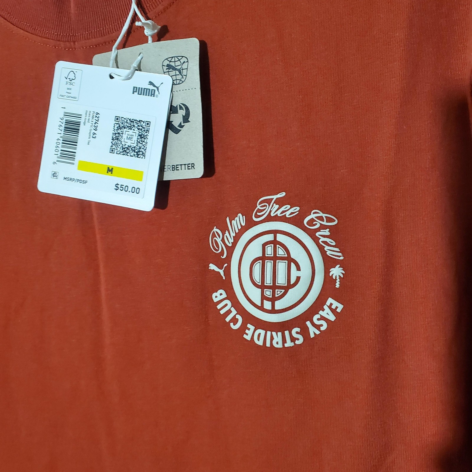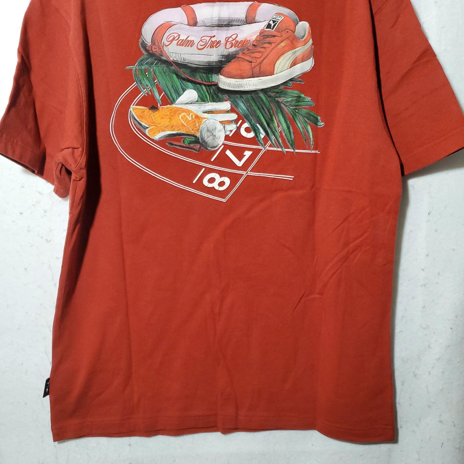 как выглядит Puma Palm Tree Crew Shirt Mens Medium Red Graphic Golf Tee Easy Stride Club фото