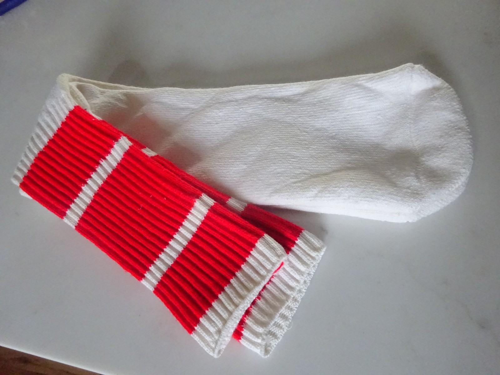 Vtg 21 Knee Socks Tube Socks White w RED Stripes - NEW - 1 Pair