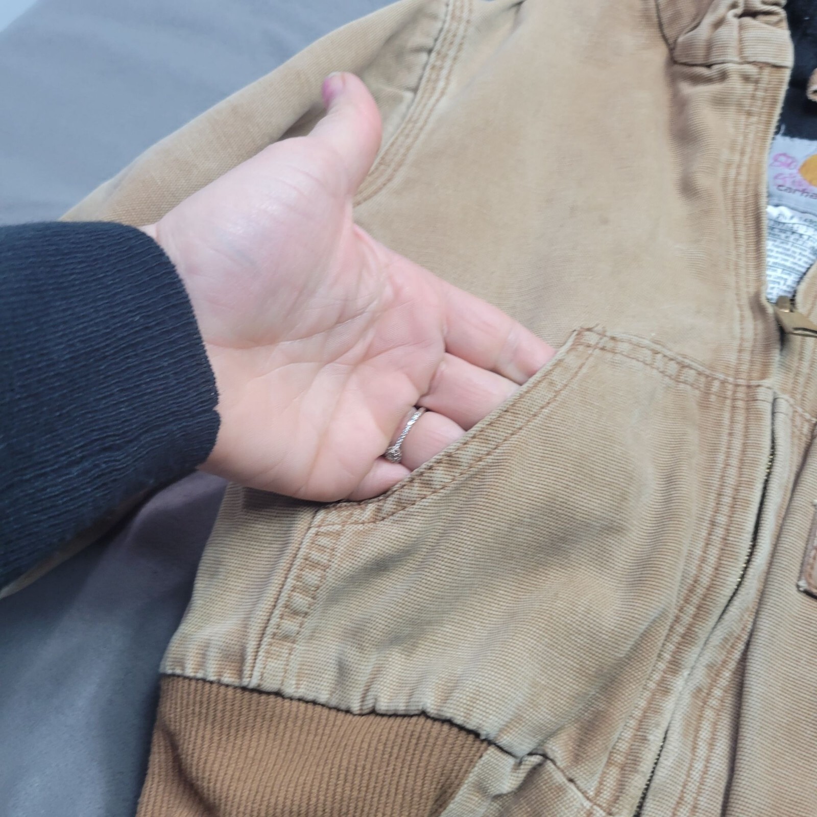 как выглядит Carhartt Kids Tan Hooded Jacket With Pockets Ribbed Cuffs фото