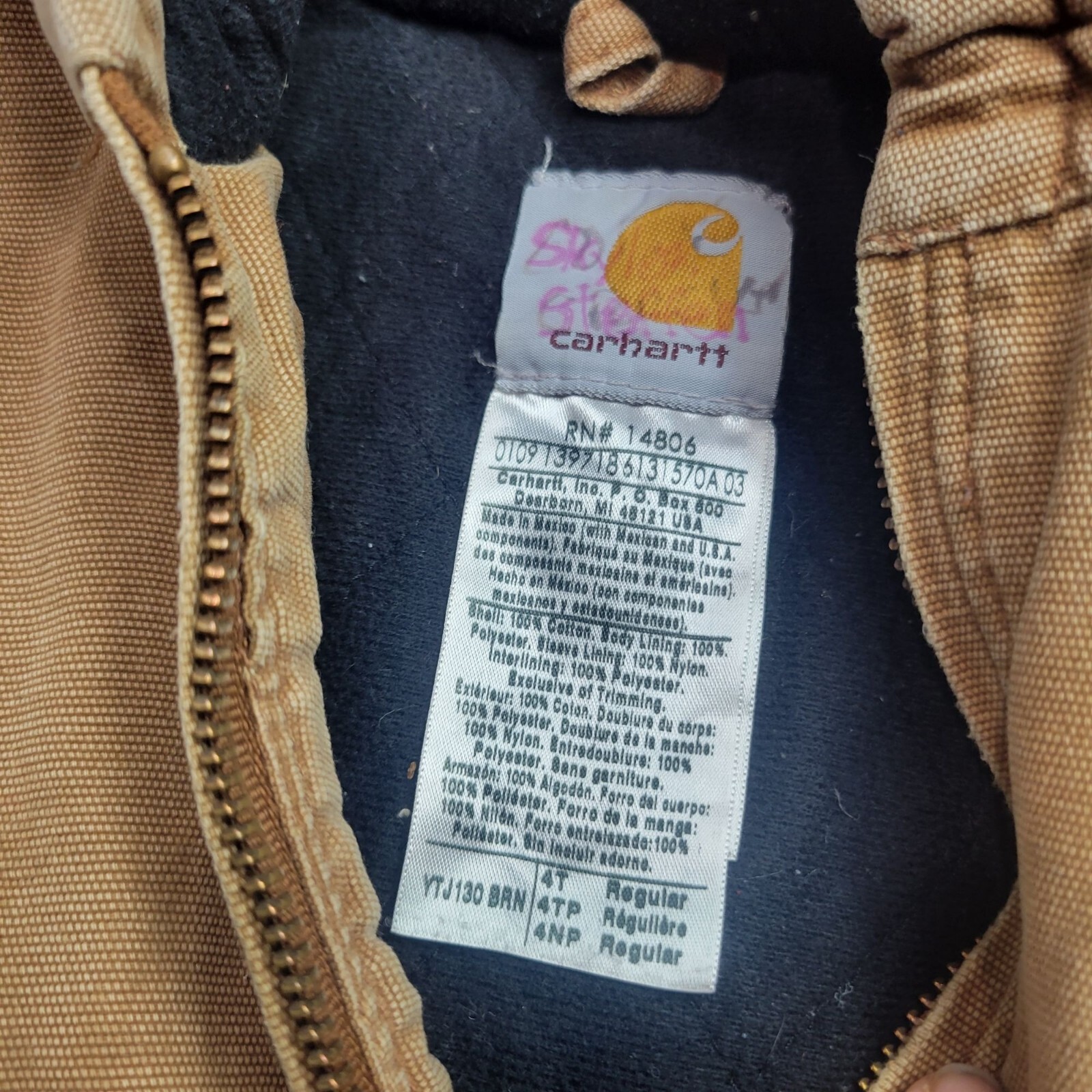 Carhartt Kids Tan Hooded Jacket With Pockets Ribbed Cuffs