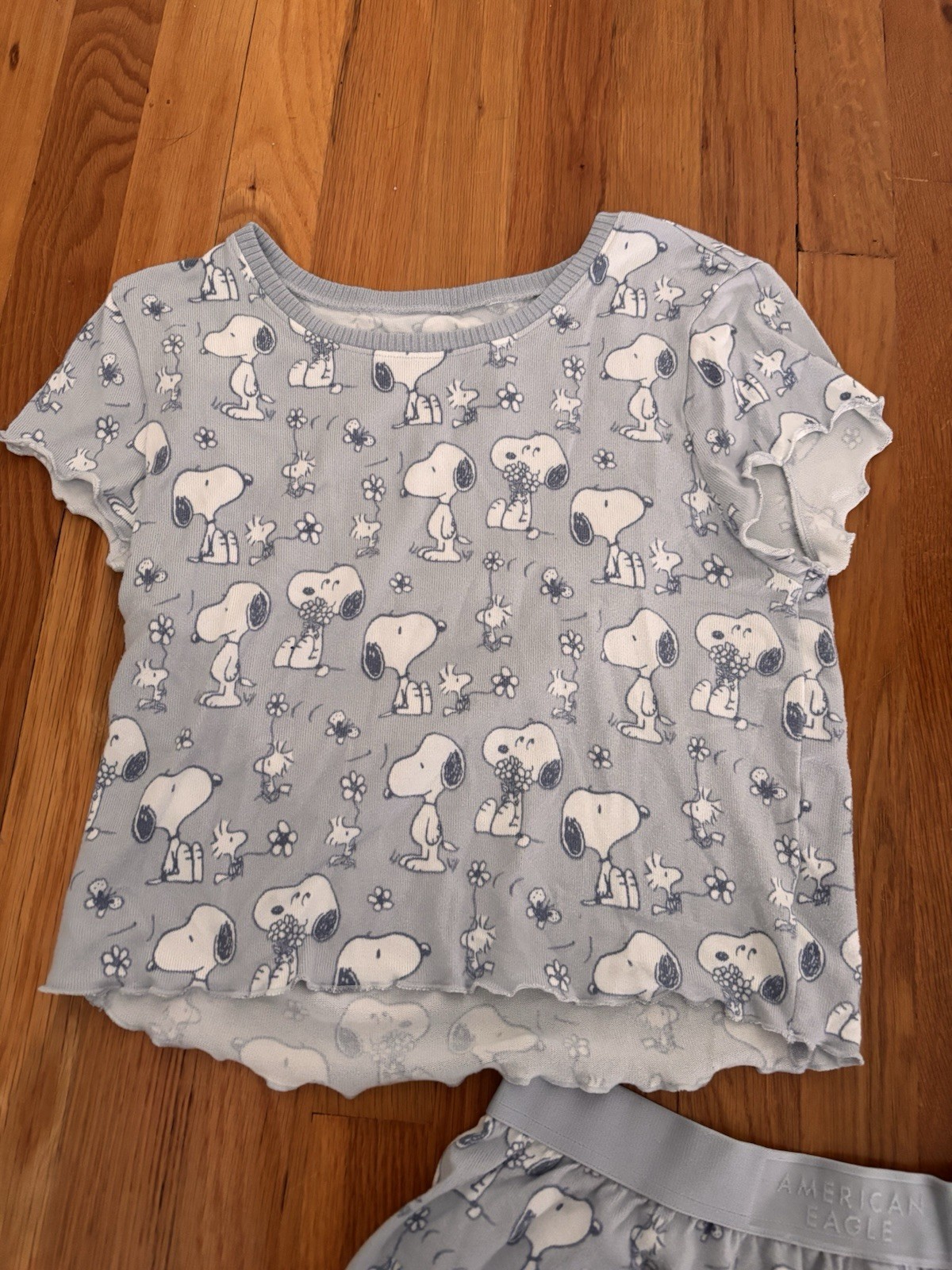 American Eagle Snoopy Peanuts Plush Blue Spring Pajamas Set, Size Medium