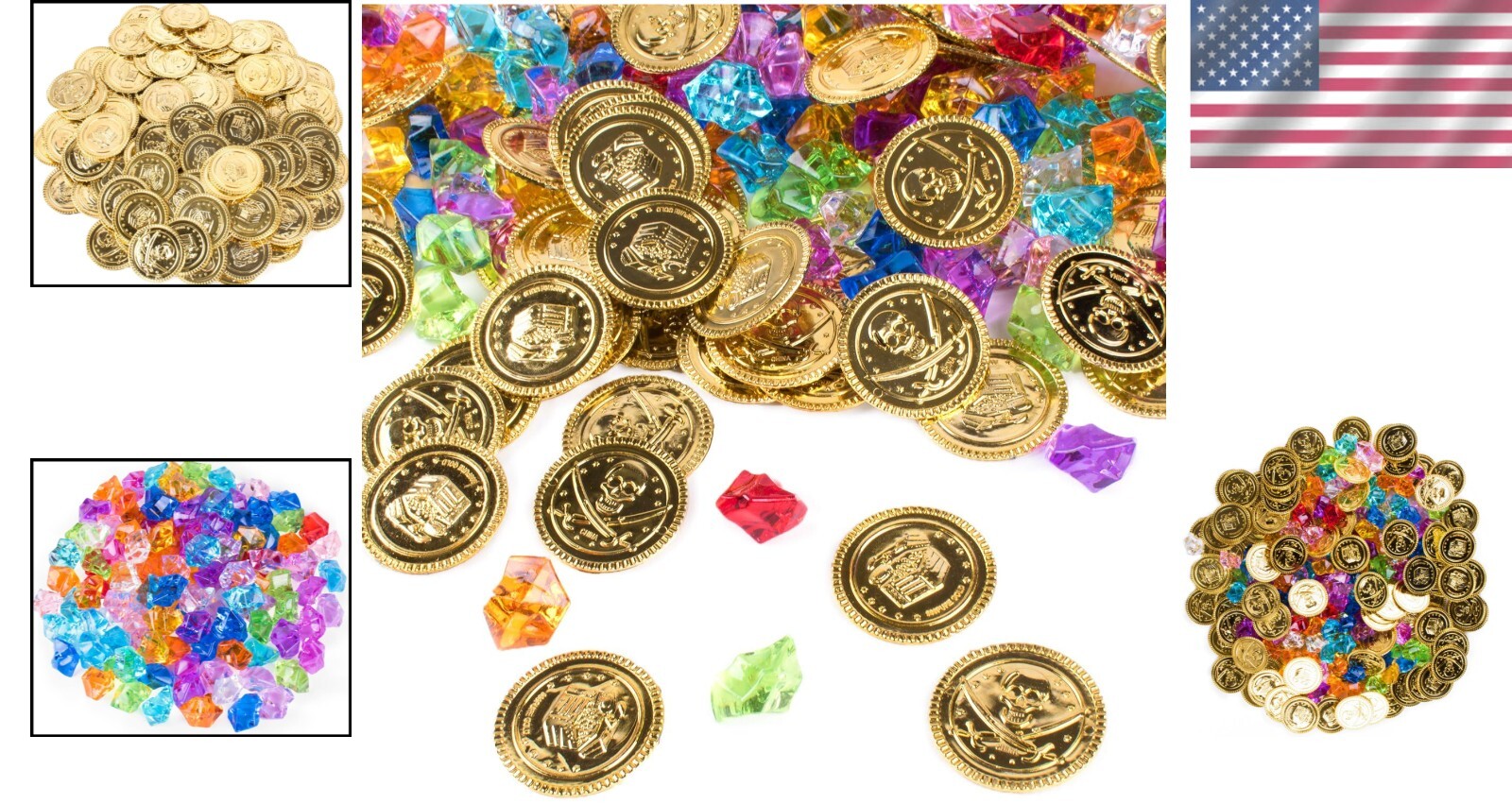 120 Plastic Pirate Coins Gems - Ideal for Birthday Party Favors and Games