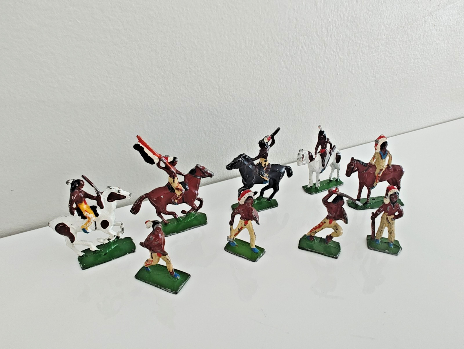 как выглядит Vtg Cowboy Indian Iroquois Fighting Lead Figurine Toy Set - Britains Japan фото
