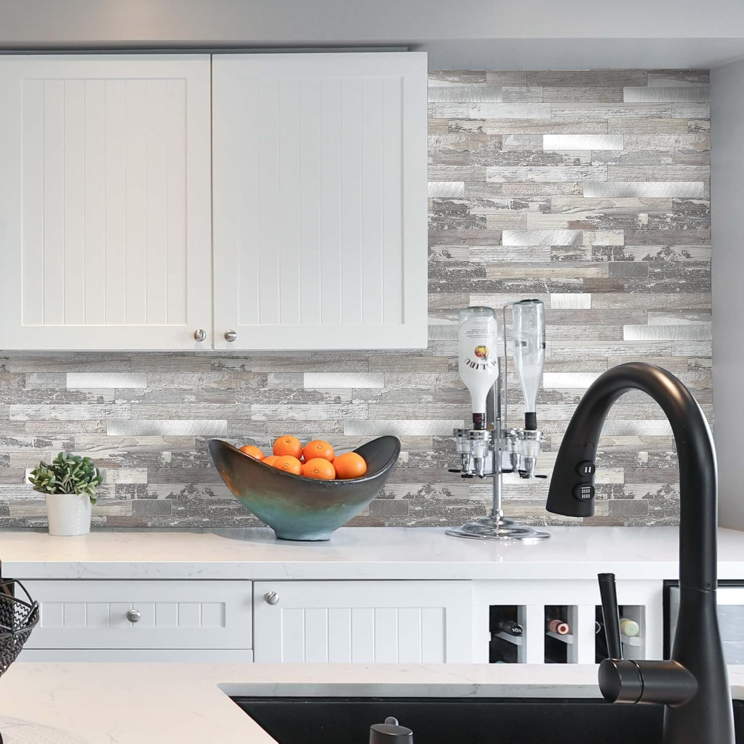 2026 New Upgrade Peel and Stick Wood Metal Tile Backsplash, Stick on Tiles for B