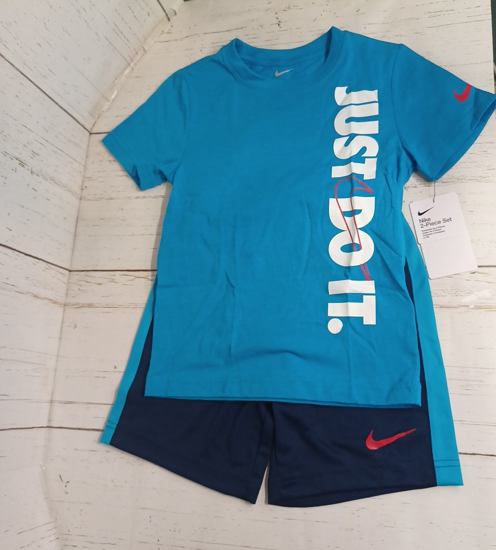 Nike boys Dri-fit T-shirt shorts 2 piece set Just do it midnight navy white 7