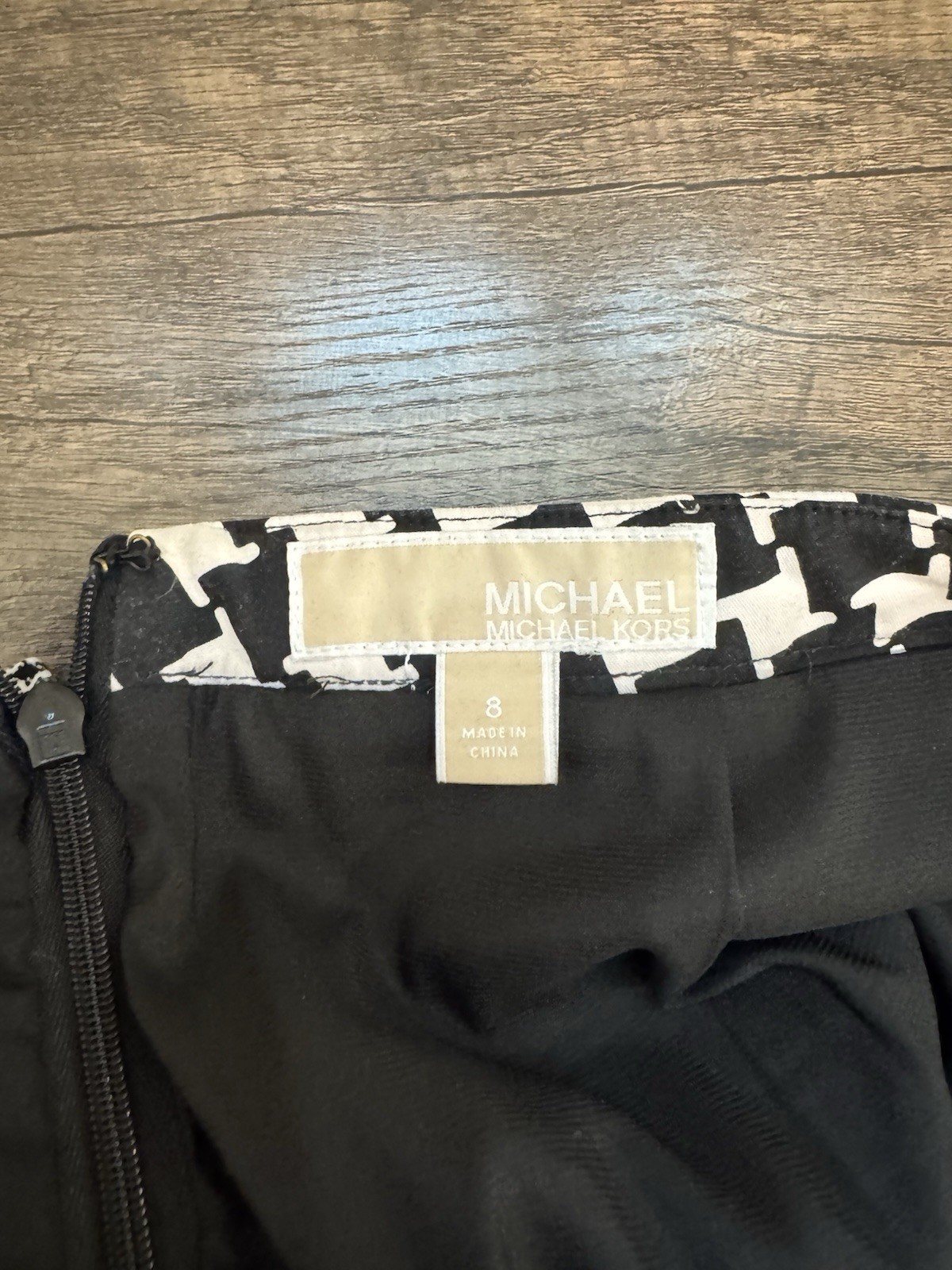 как выглядит MICHAEL Michael Kors Straight Pencil Skirt Houndstooth Black White Size 8 фото
