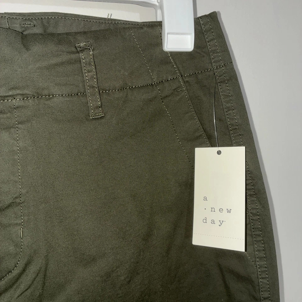 как выглядит A New Day Straight High Rise Pants Women 2 R Green Khaki Cotton Stretch 27"x26.5 фото
