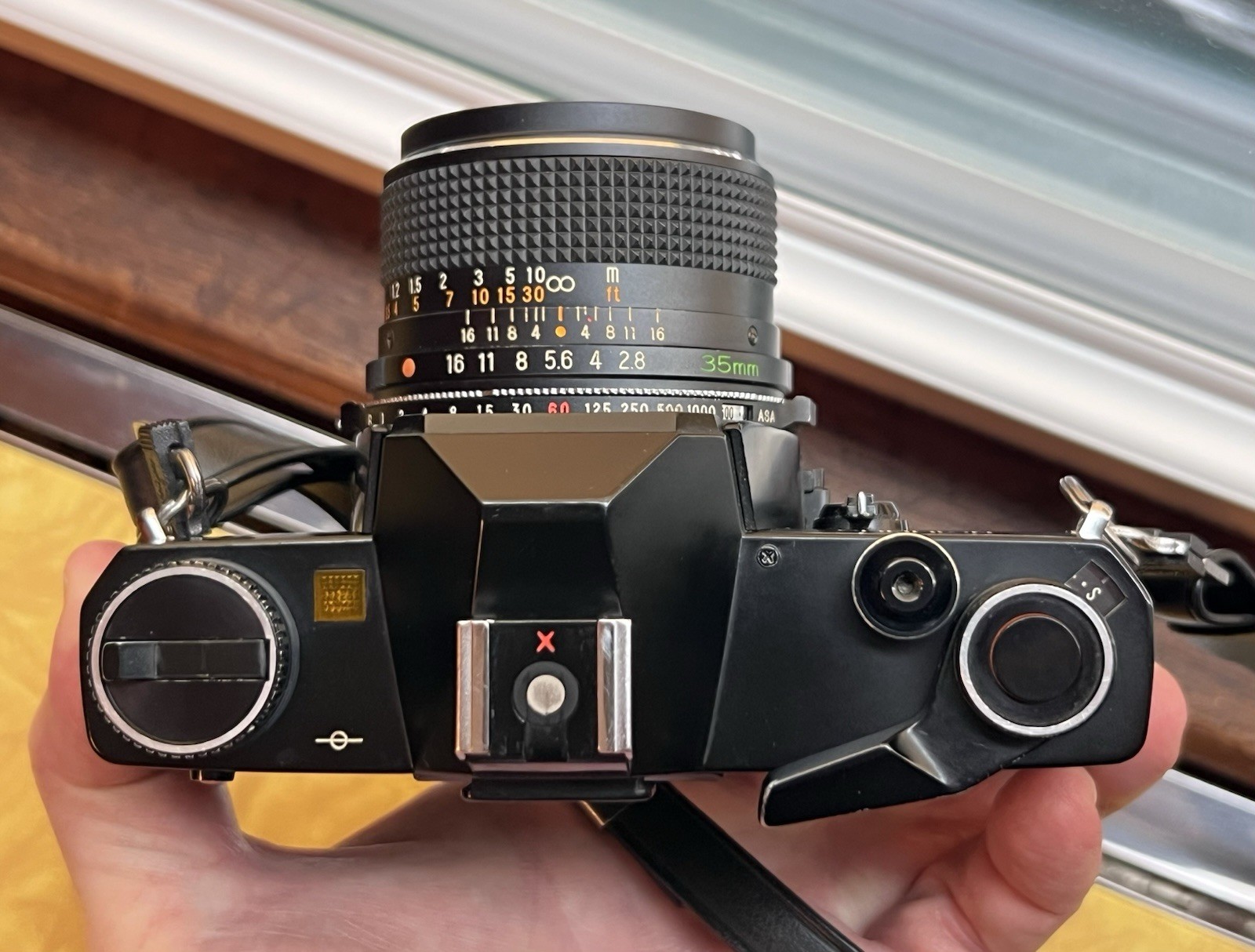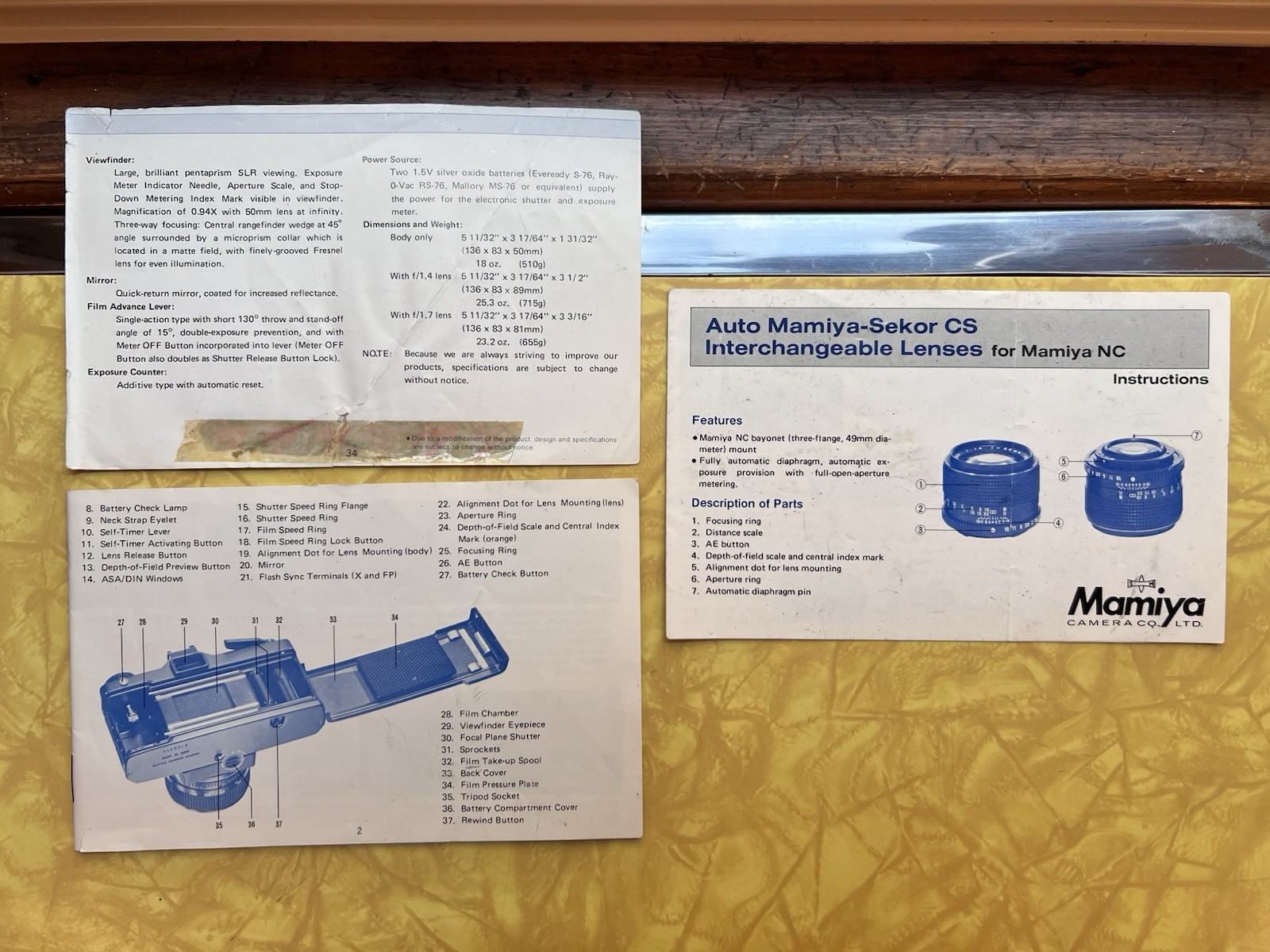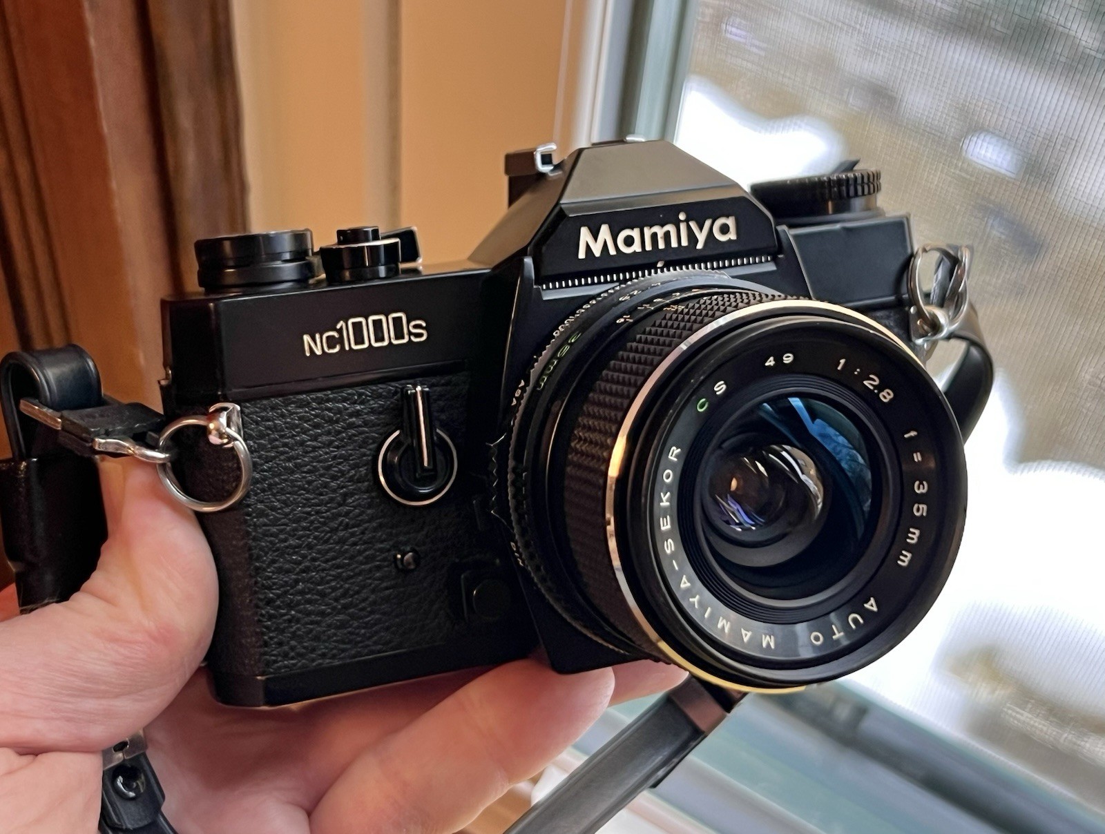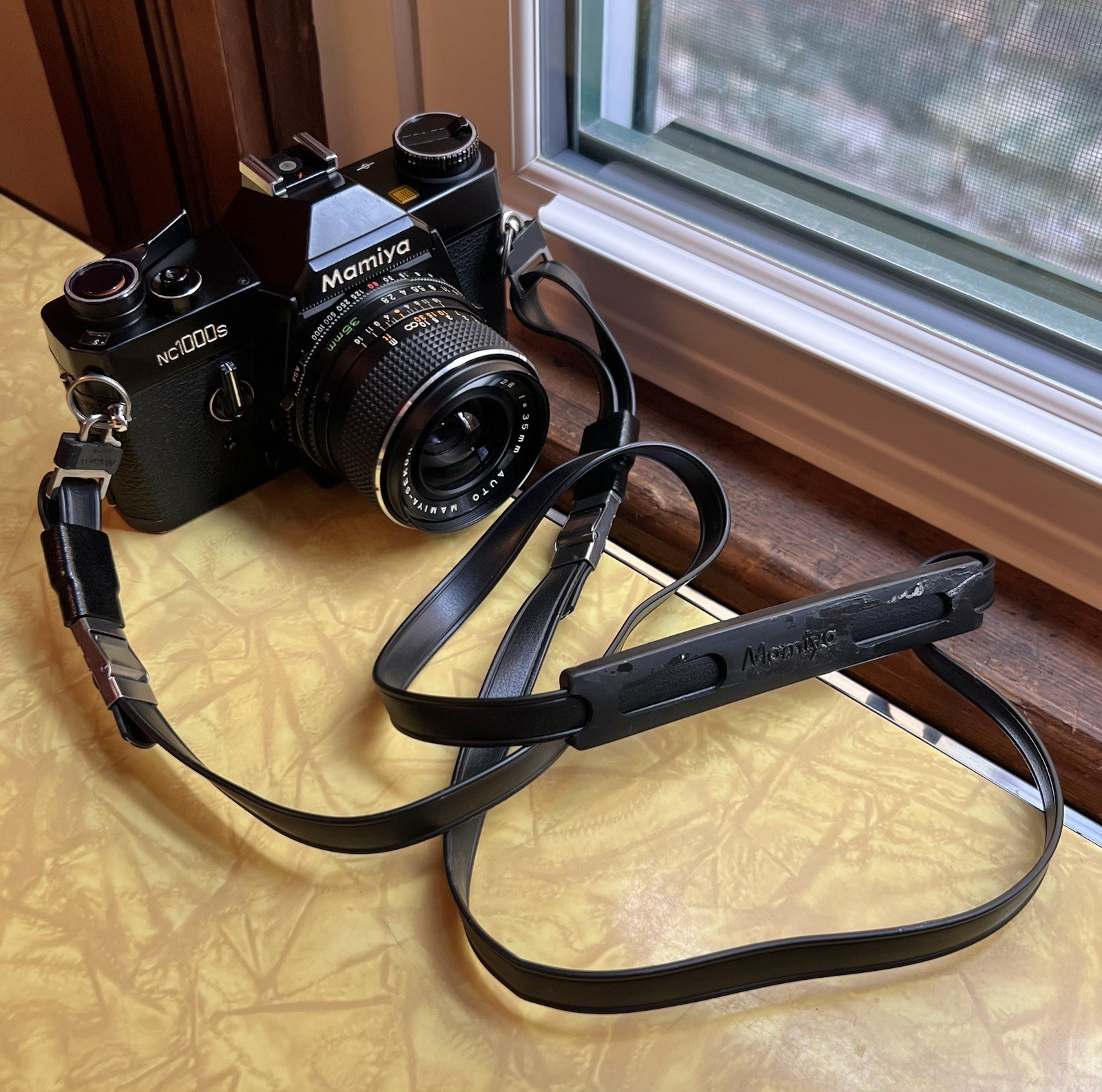 Mamiya NC1000s 35mm Film SLR Camera with Mamiya CS 2.8 35mm Lens Cap Strap