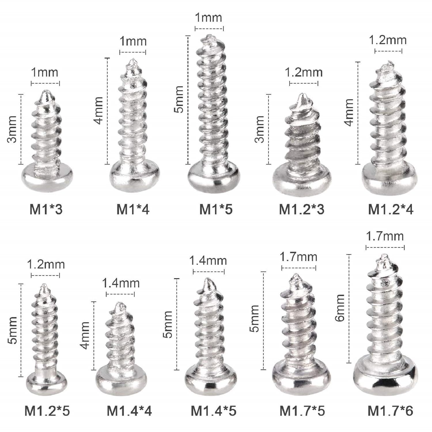 1000 Pcs Phillips Pan Head Screws Kit: Self-Tapping Easy Storage Box Included