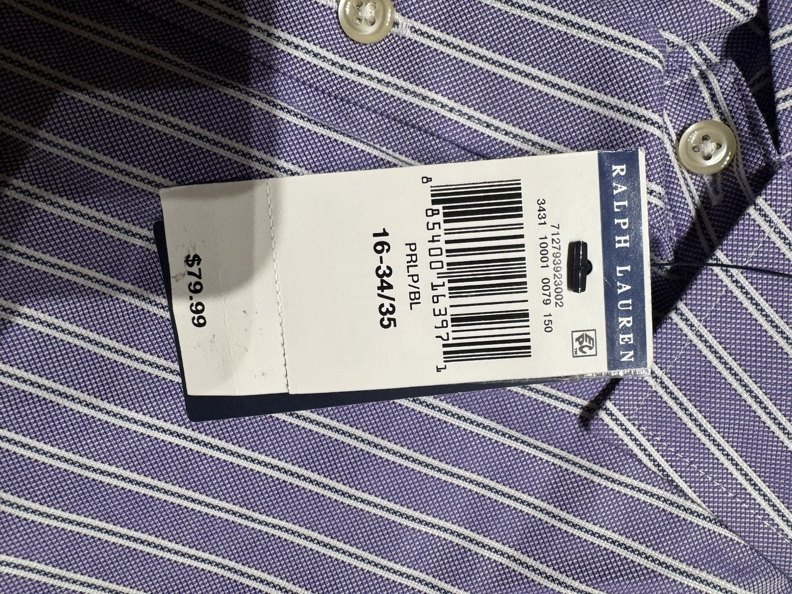 как выглядит POLO RALPH LAUREN MENS Purple STRIPE DRESS SHIRT EASY CARE Sz 16 34-35 NWT фото