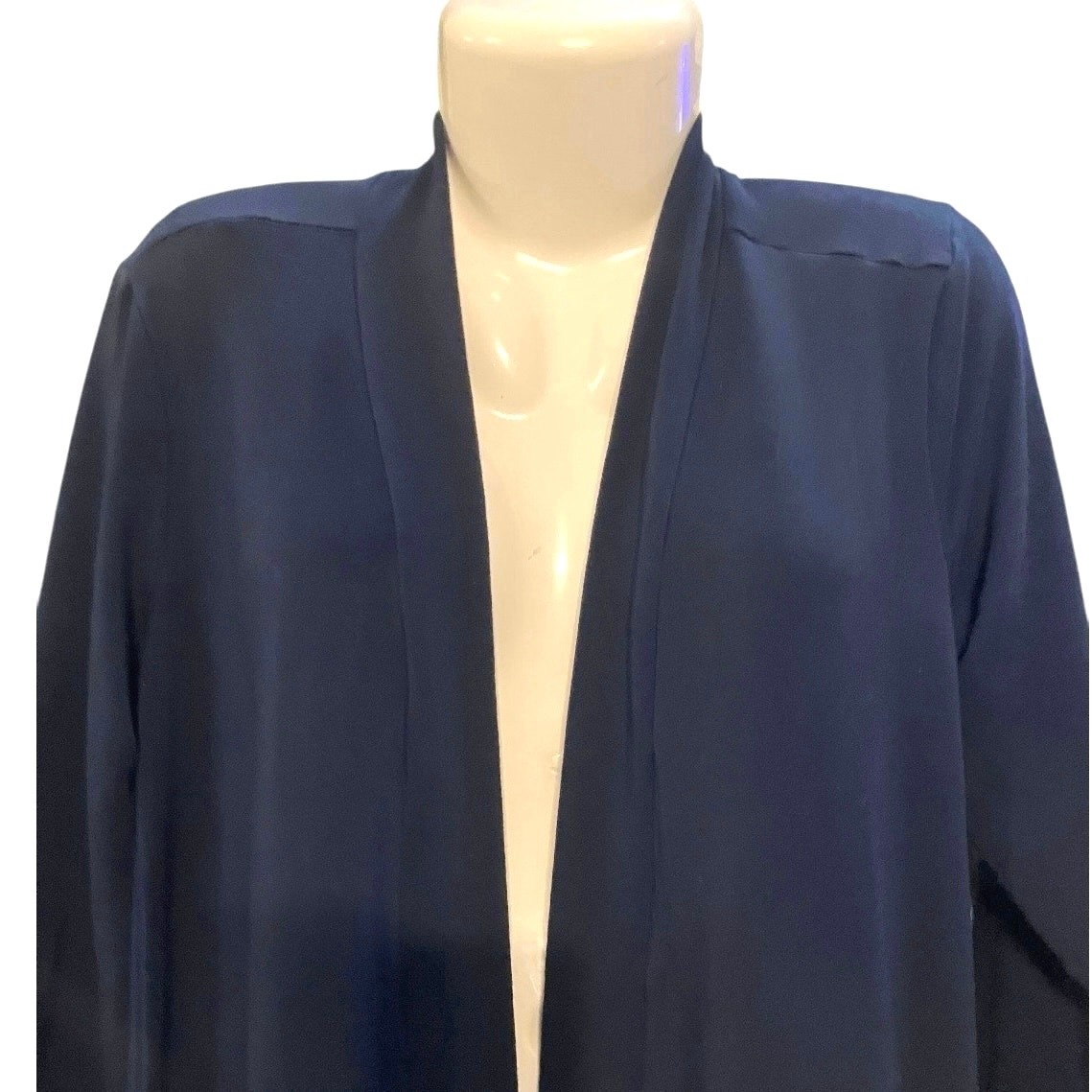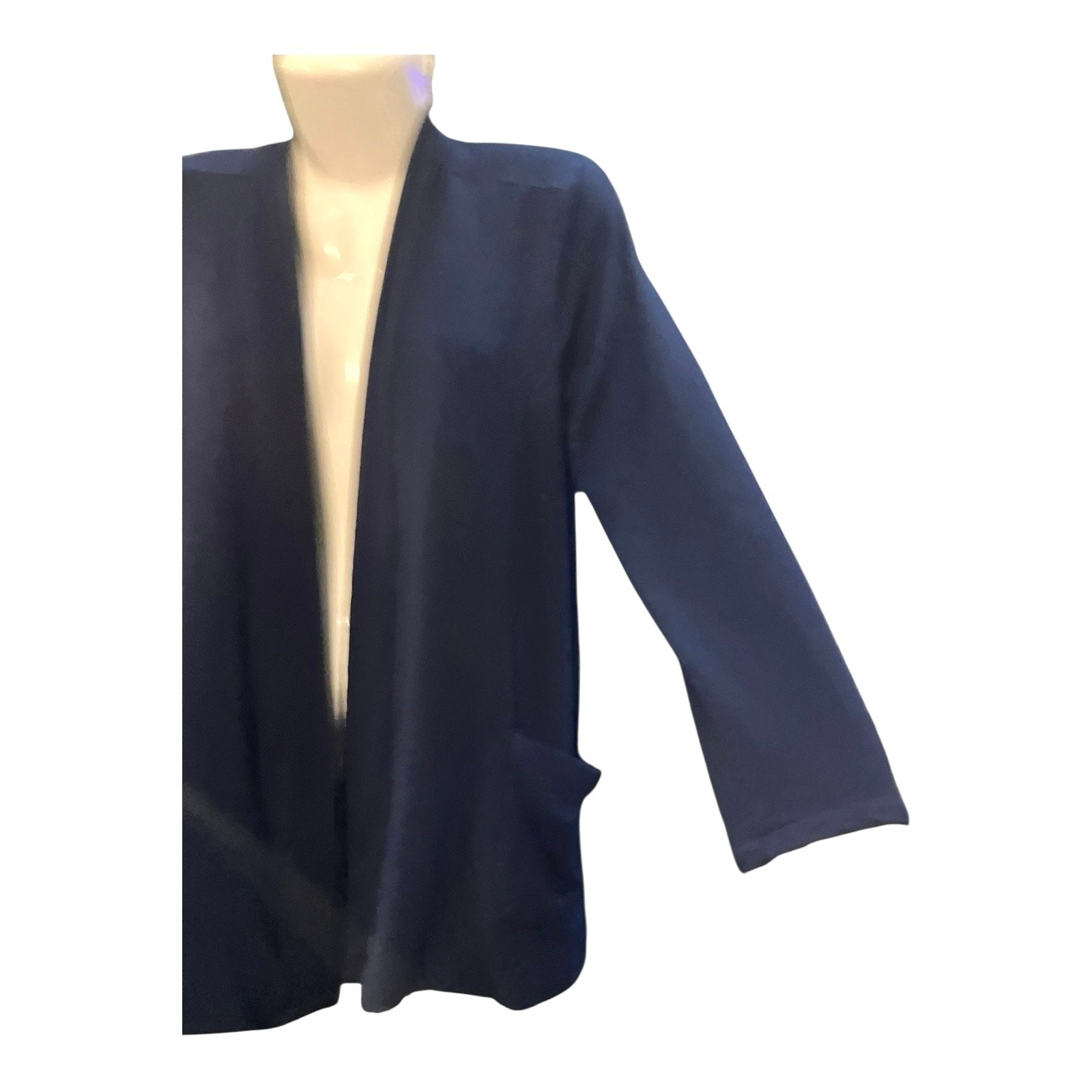 как выглядит Susan Graver Womens Navy Brush Back Knit Open Front Cardigan Front Pockets SZ S фото