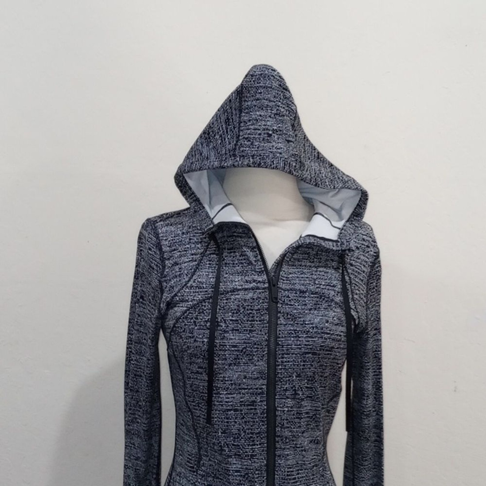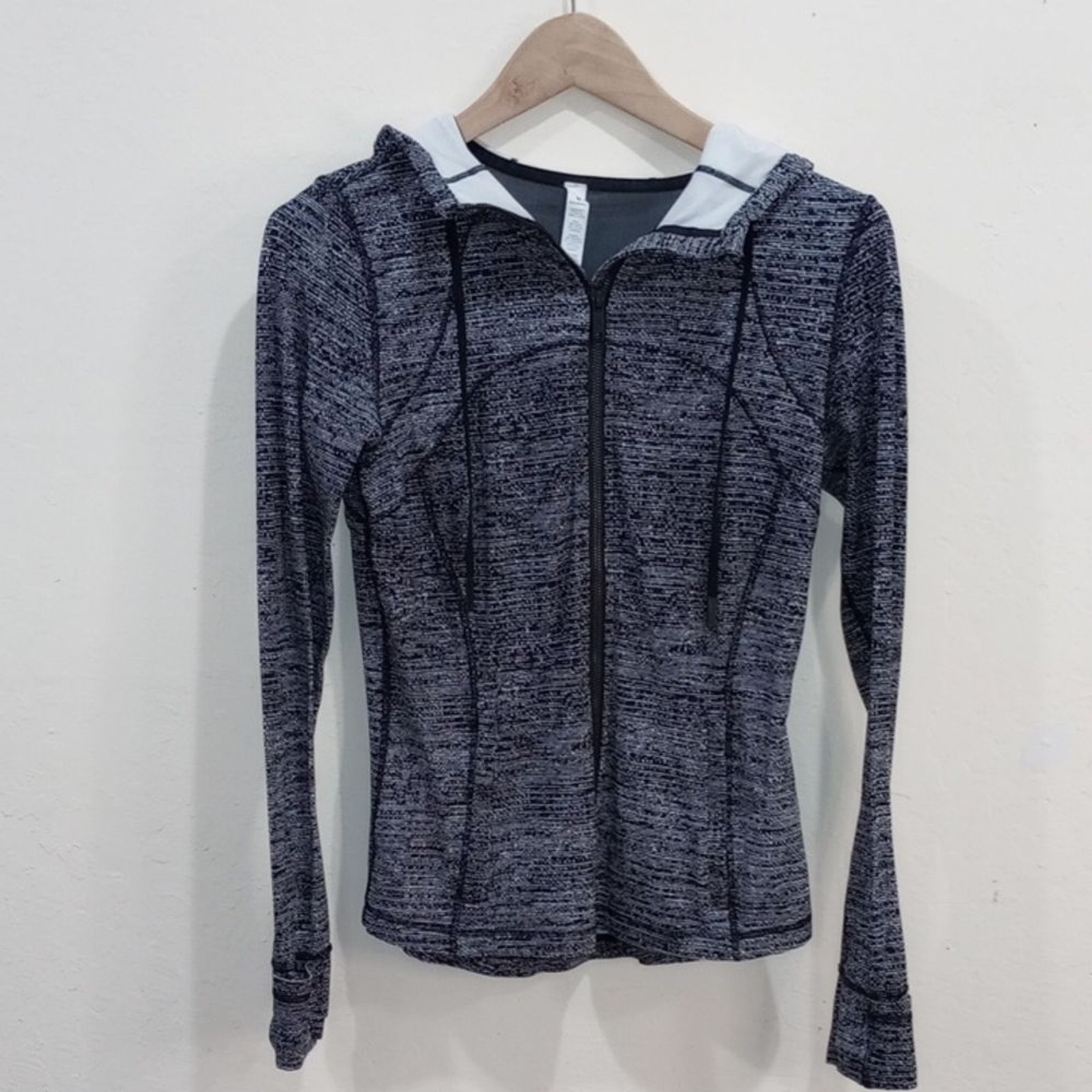 как выглядит Lululemon Hooded Define Jacket Nulu Twillines White Black, Size 8 фото