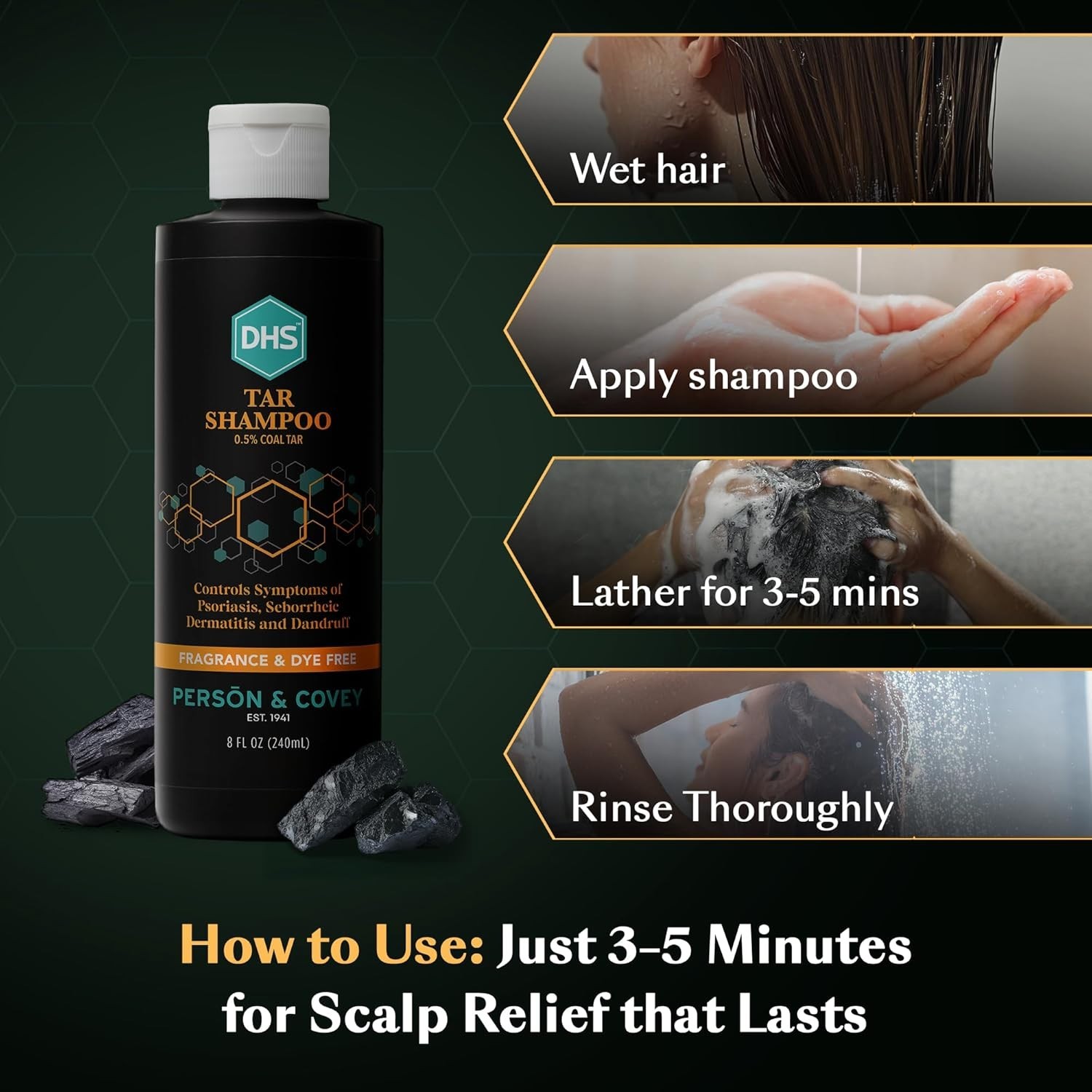 DHS Coal Tar Shampoo 8 Ounces - Eco-Friendly Dandruff Solution for Hair Health