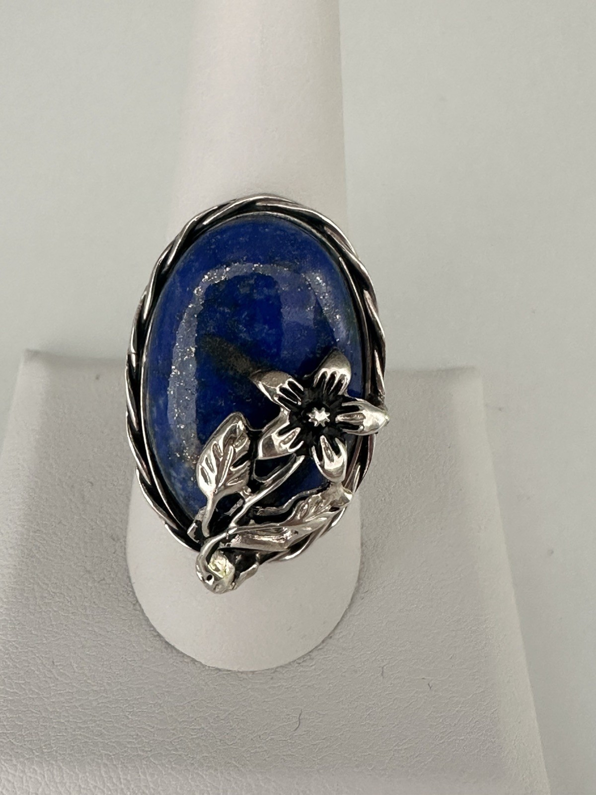 как выглядит Silver RING 950 Peruvian Handcrafted With natural blue Stone фото