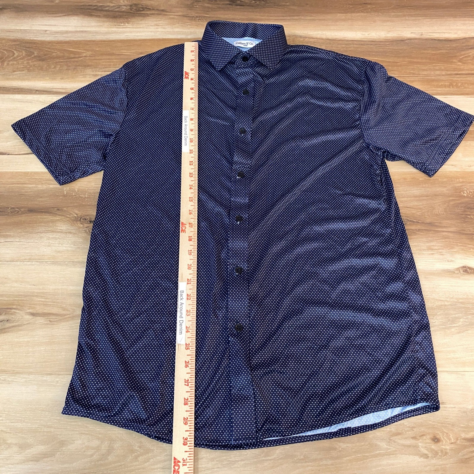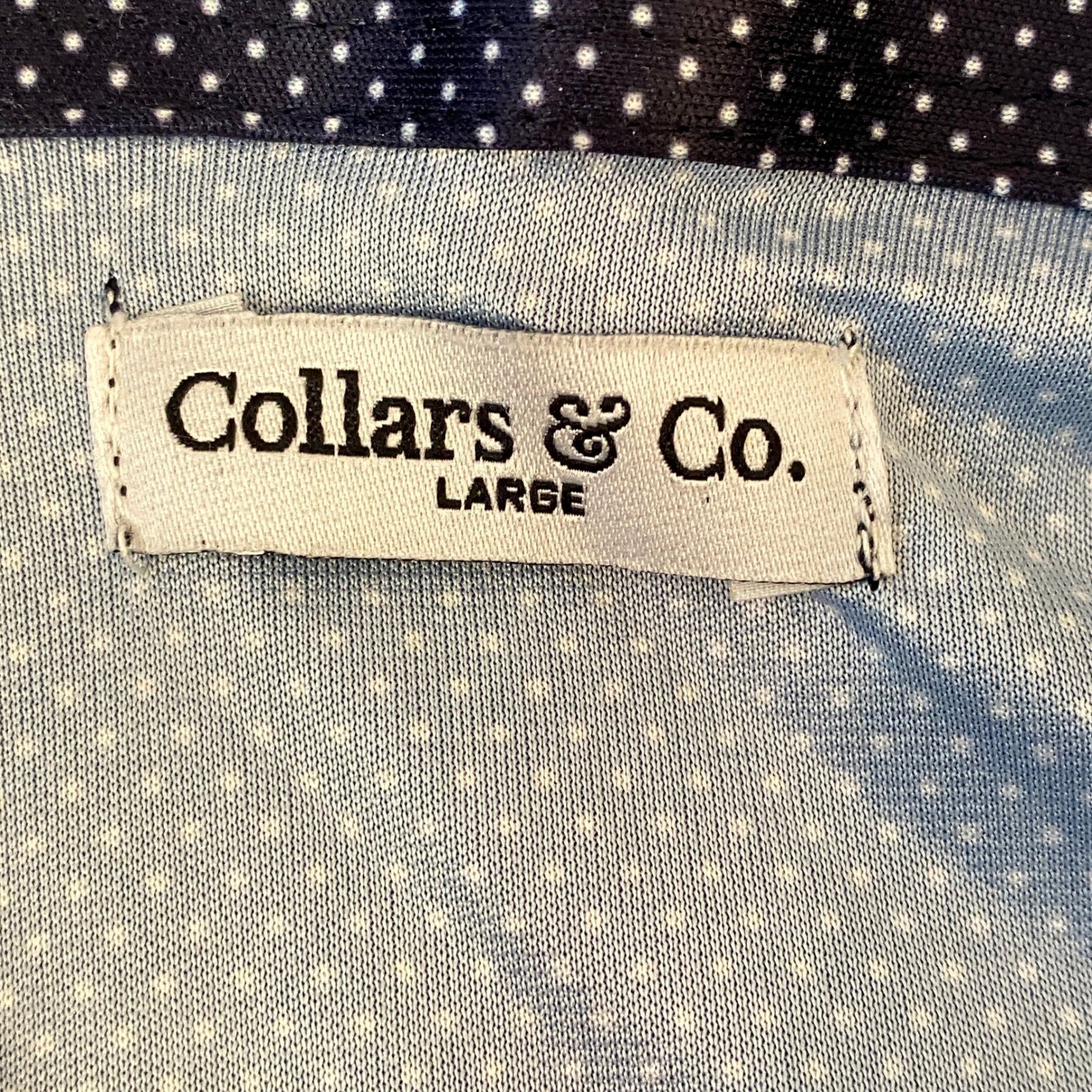 Collars Co. Dress Collar Polo Shirt Mens Large Blue White Polka Dot Button Up